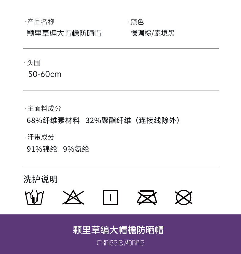 Chrissie Morris 颗里草编大帽檐防晒帽【YW】