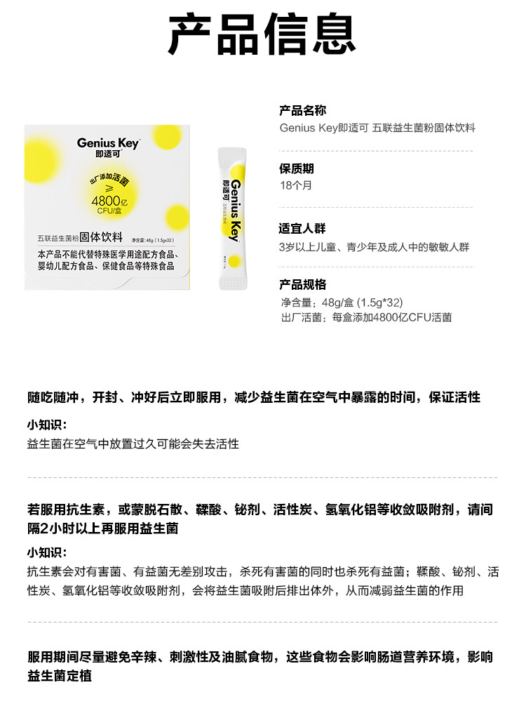 宝宝树 即适可 五联益生菌粉固体饮料1.5g*32袋