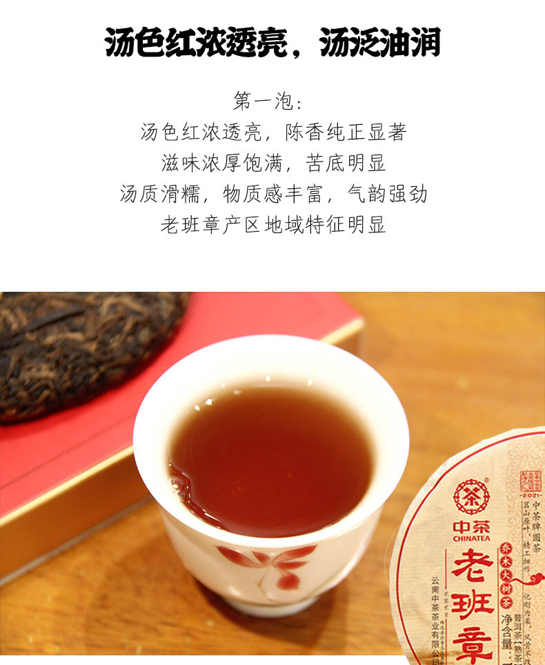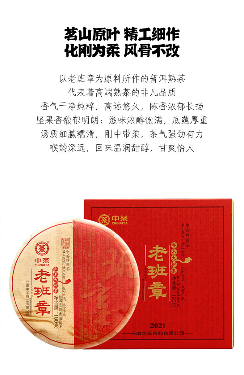 中粮-中茶2021年老班章乔木大树普洱熟茶小饼100g/饼/云南干仓直发