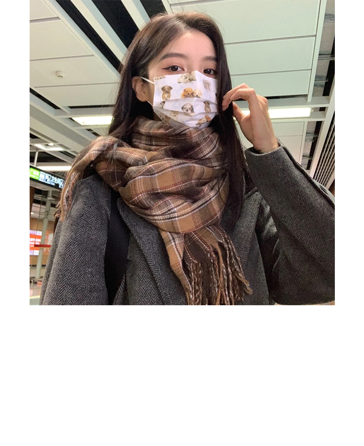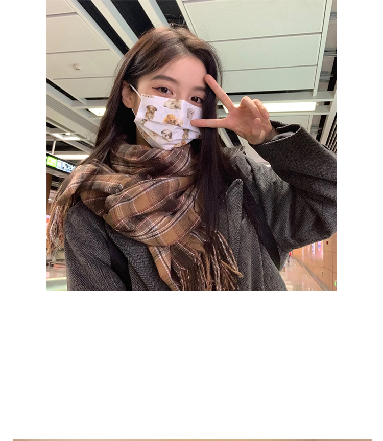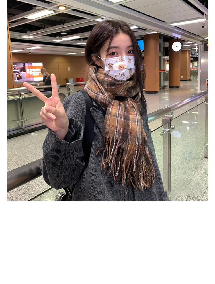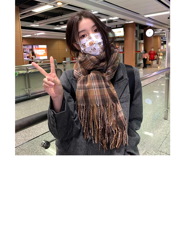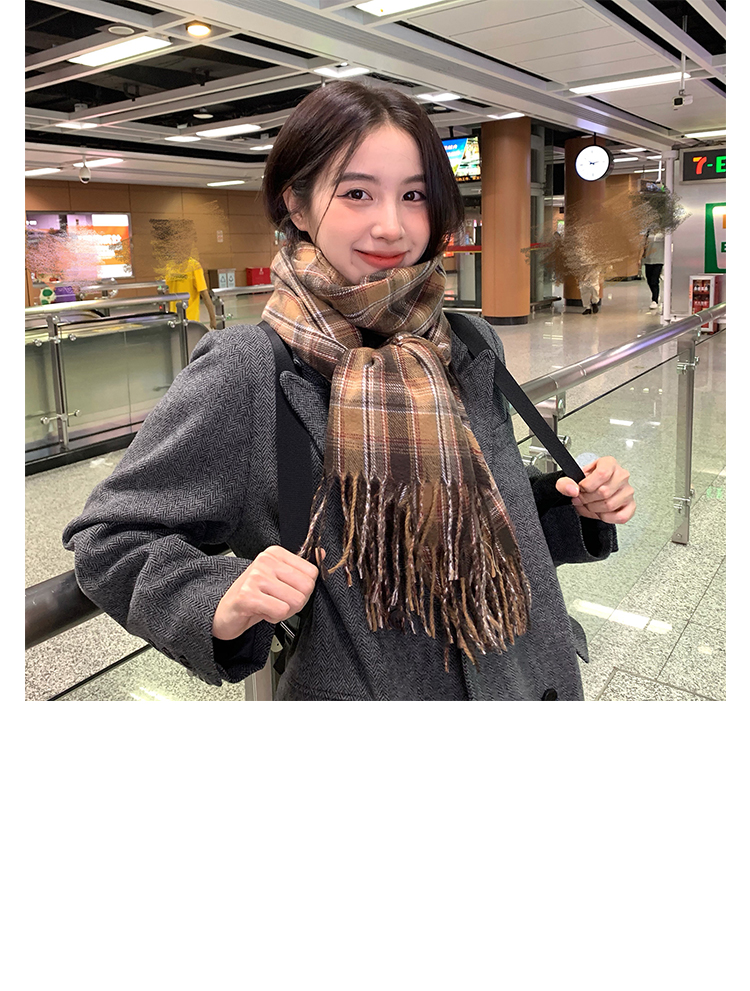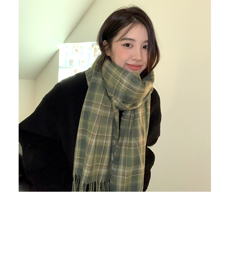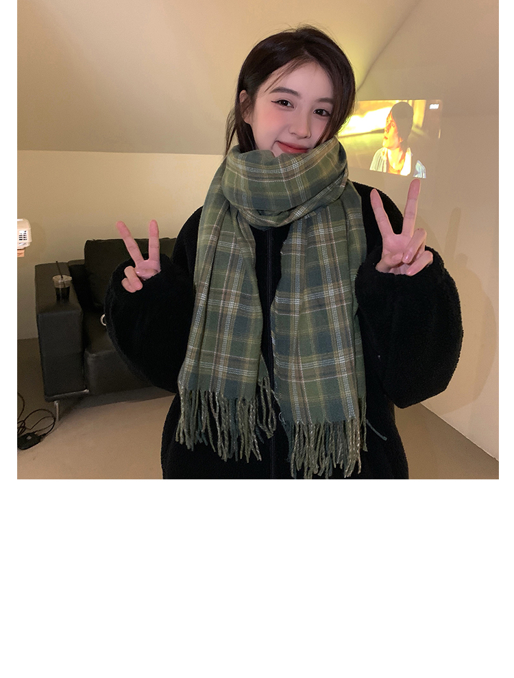 【新款时尚百搭 韩版舒适情侣围巾】咸菜绿格子双面流苏围巾女复古舒适感秋冬季加厚保暖格纹披肩围脖