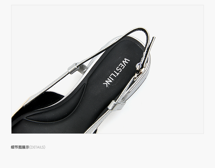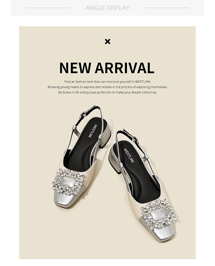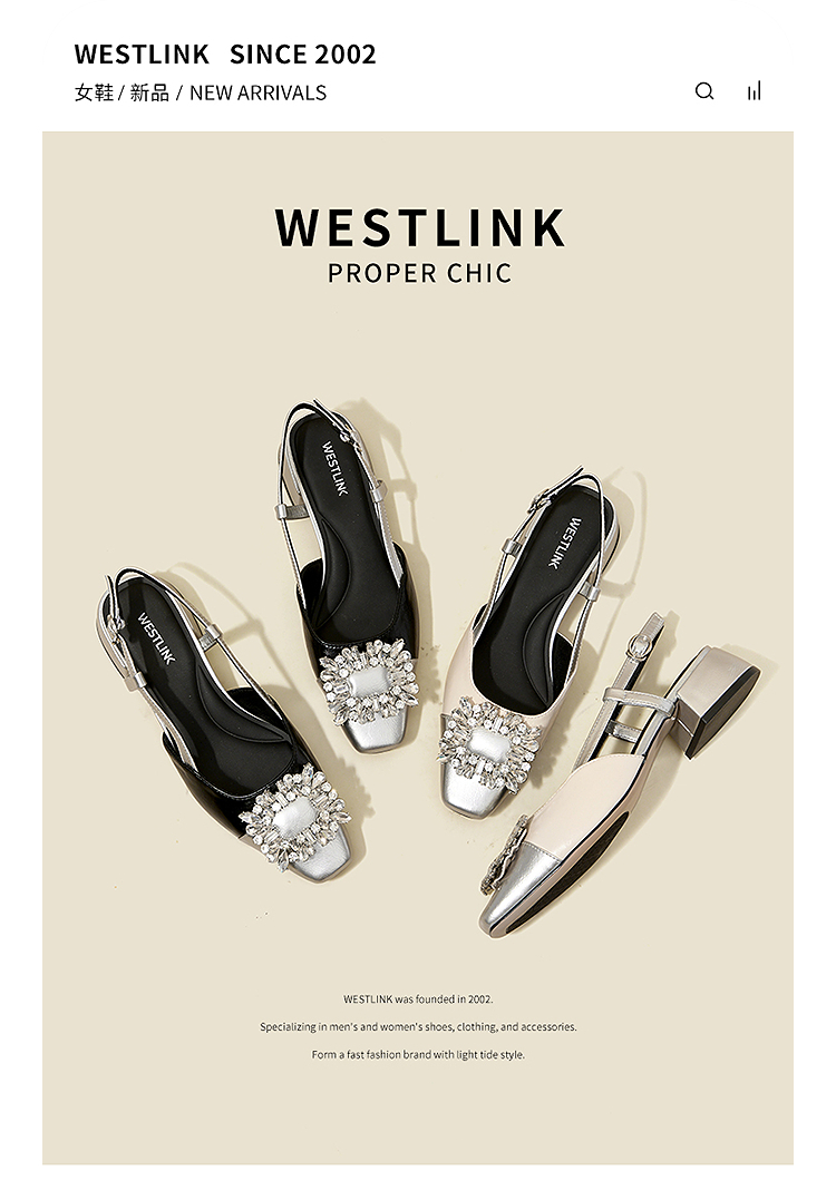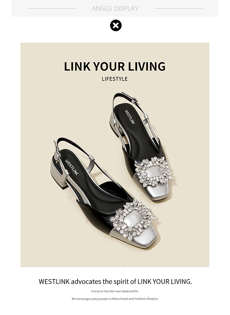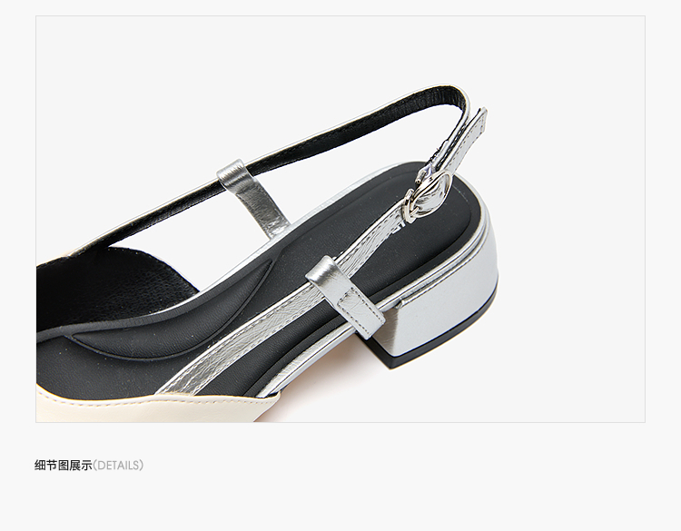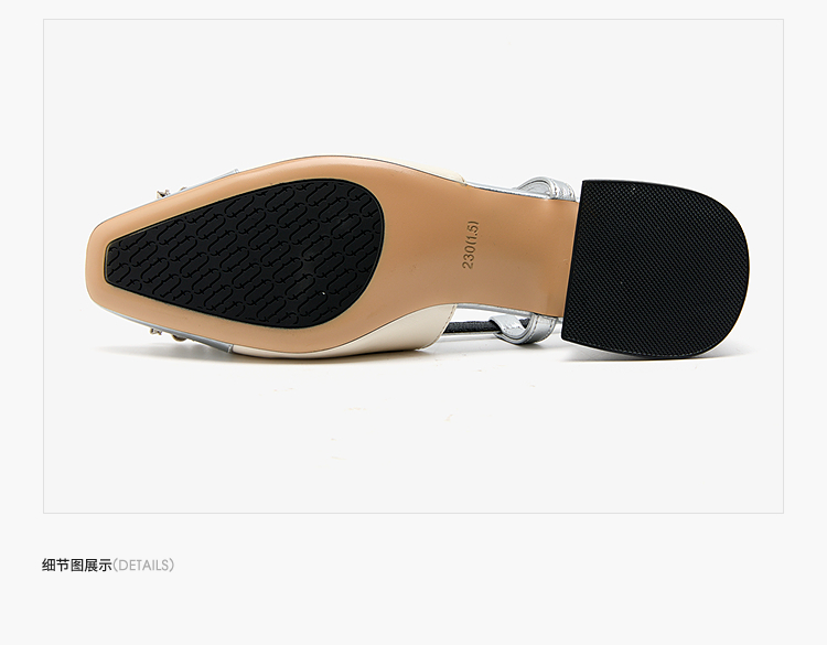 西遇小香风包头凉鞋女新款春夏法式方扣水钻银色方头粗跟单鞋V0656462