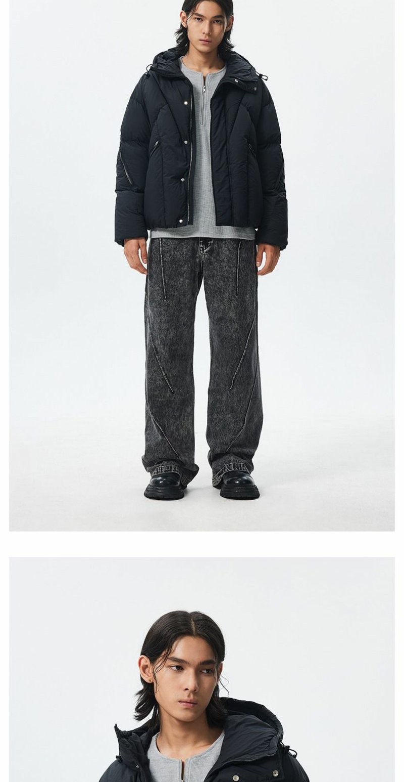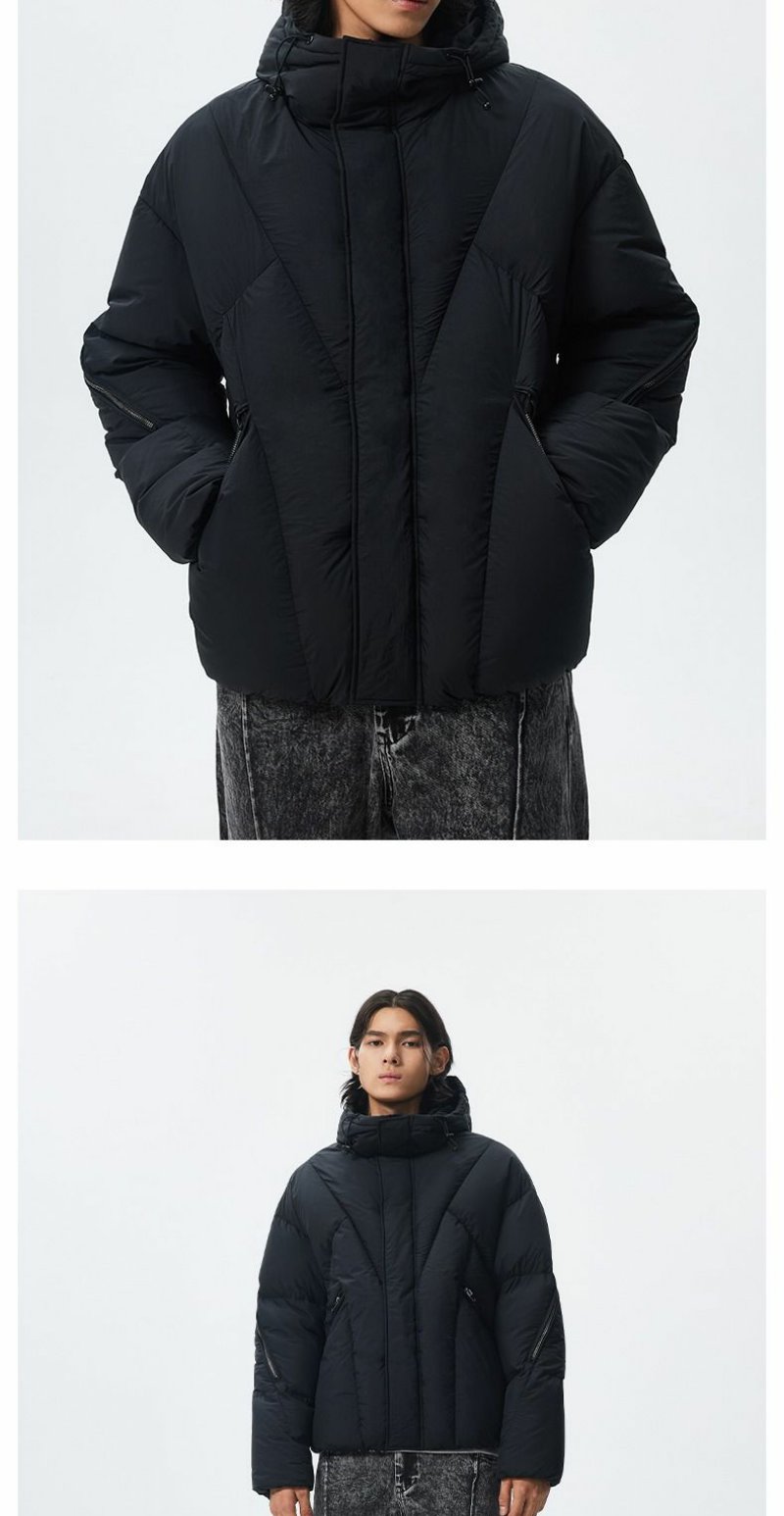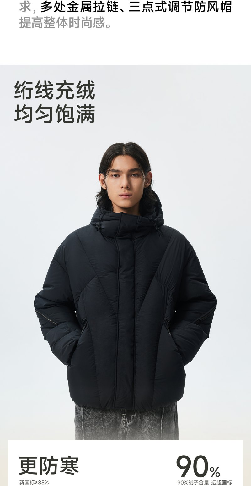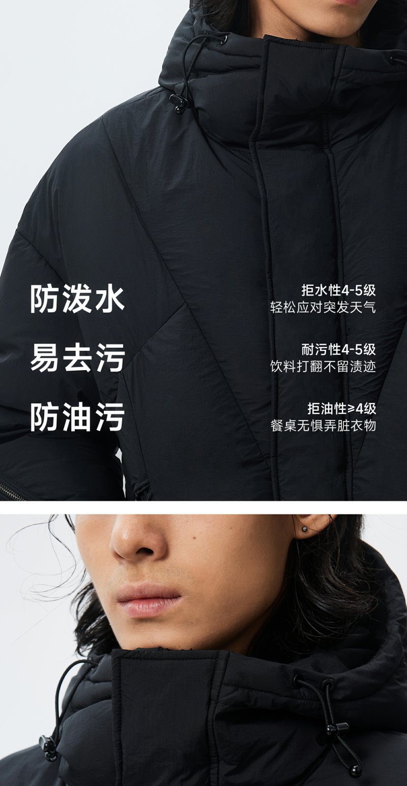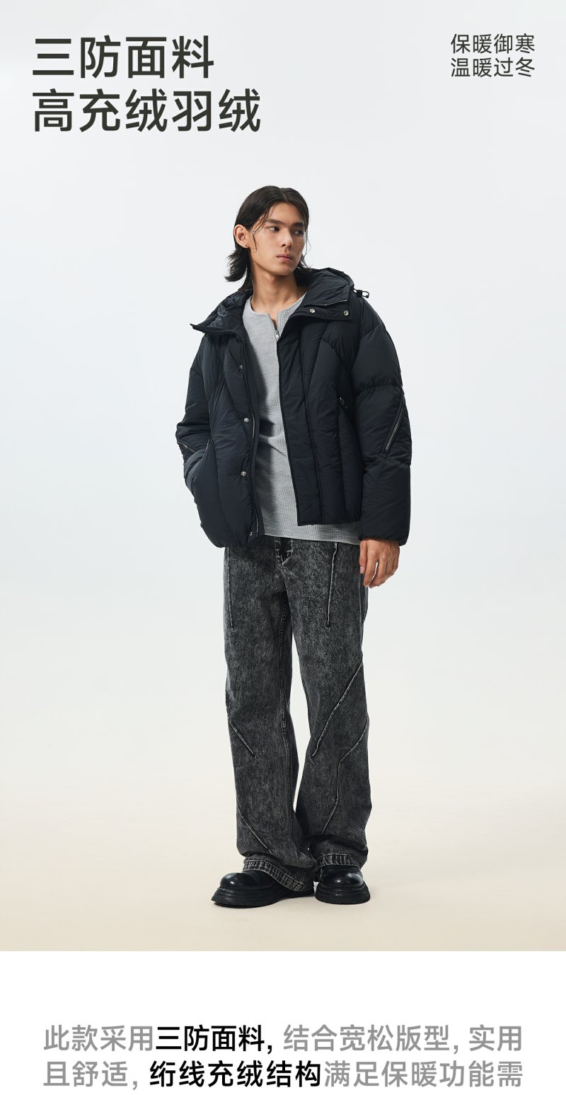 CHINISM赤尘 黑色三防连帽鸭绒羽绒服男冬季轻薄保暖加厚防寒外套