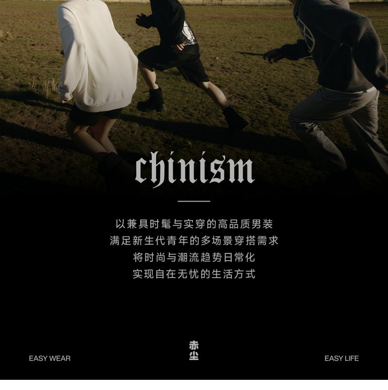 - 中国潮流快时尚男装品牌 CHINISM ,始创于2012年,正式成立于2014年。灵感源自每一位青年的穿衣需求。CHINISM - EASY WEAR