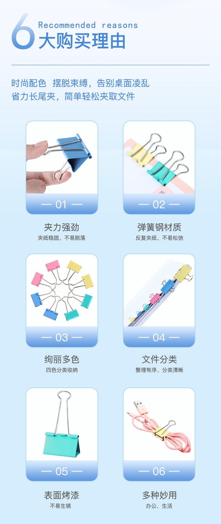 齐心 B3631长尾票夹 1# 50mm 12只/筒)