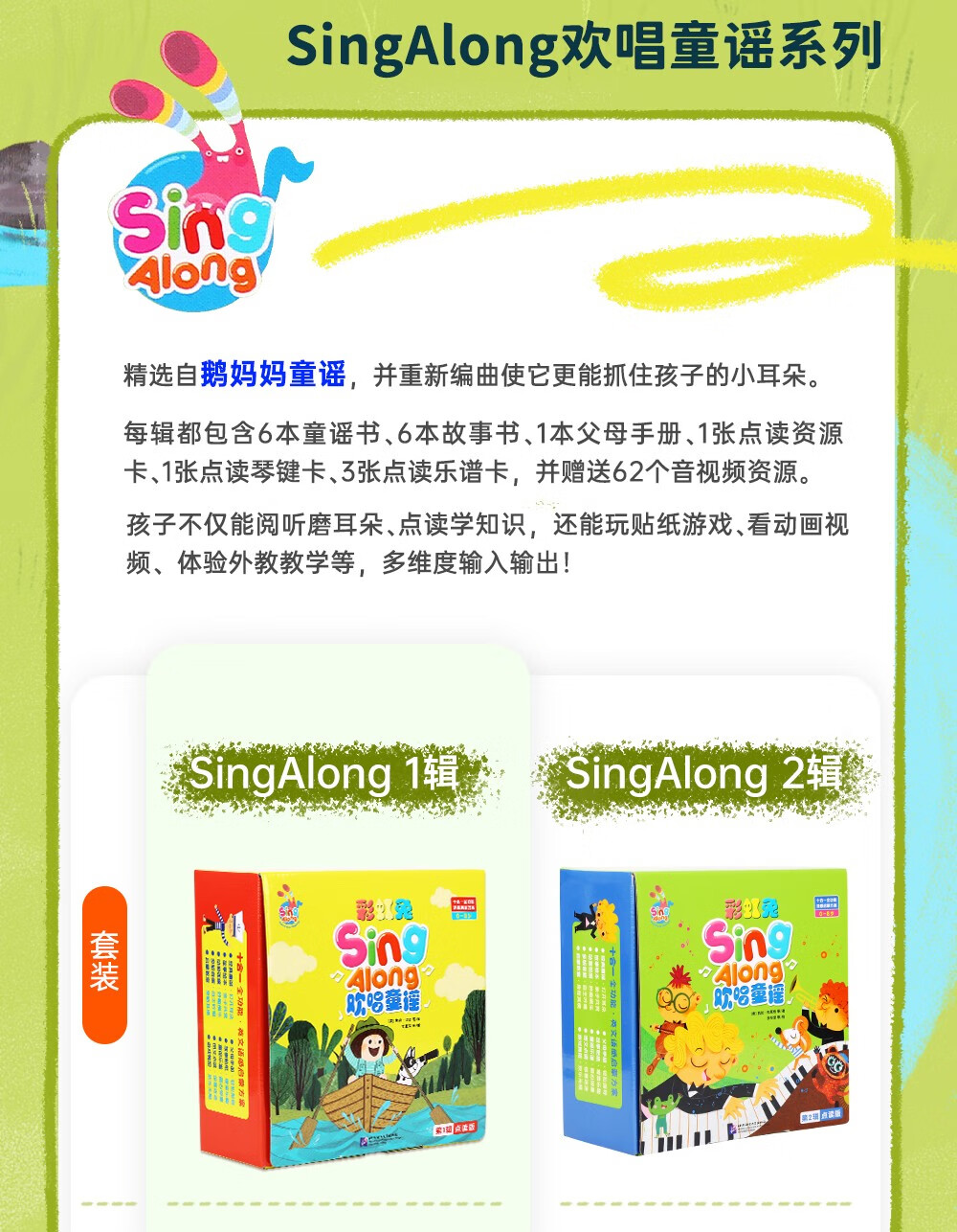 小彼恩 彩虹兔Singalong 欢唱儿歌童谣第一辑 赠琴键卡加点读提手卡 点读版盒装
