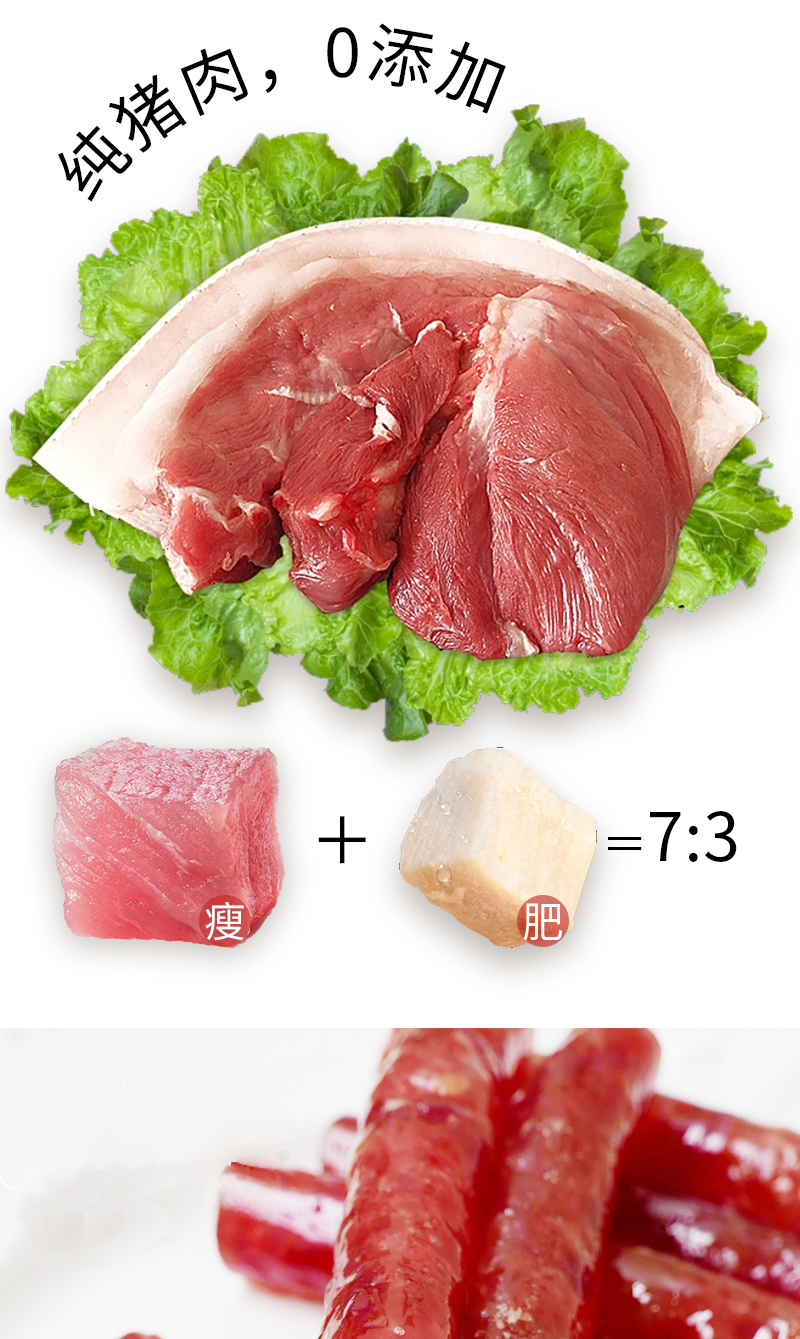 【配料】猪肉、白砂糖、食用盐、白酒、羊肠衣、食品添加剂:亚硝酸钠
