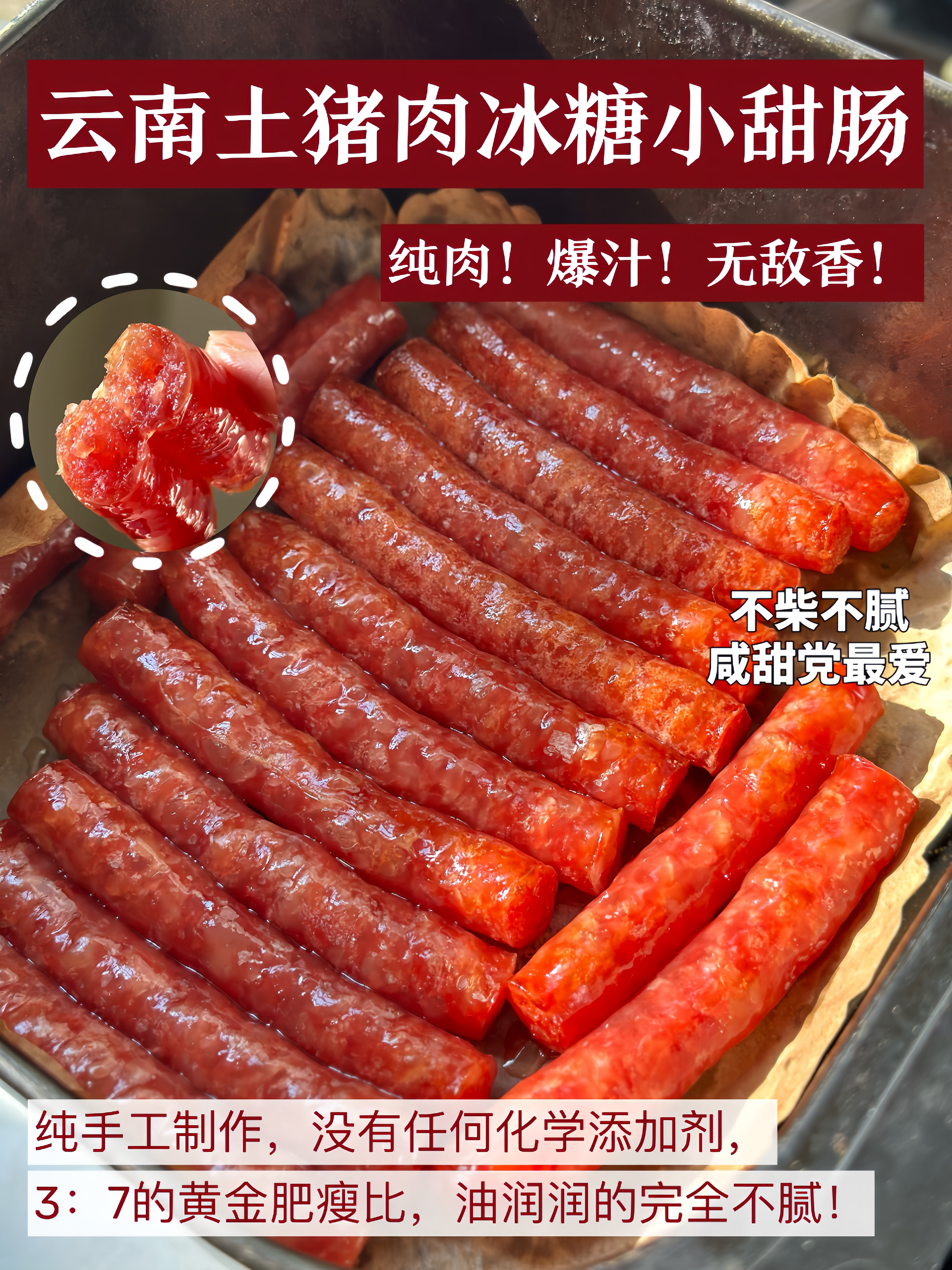 【彩云淘 云南开远冰糖小甜肠】纯猪肉0添加 3:7肥瘦比 纯手工制作 老人小孩都爱吃