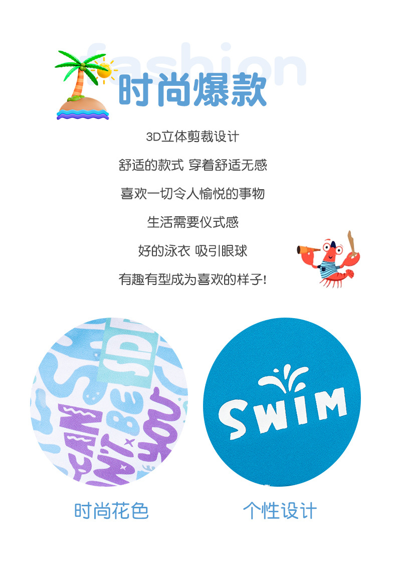 【儿童泳衣丨男女童泳衣系列】整体柔软亲肤,穿脱方便,时尚感满满,版型简约立体裁剪,棉质内里,穿着更舒适,亲水速干高弹不起球,包边细致走线均匀,不同版型花色可选
