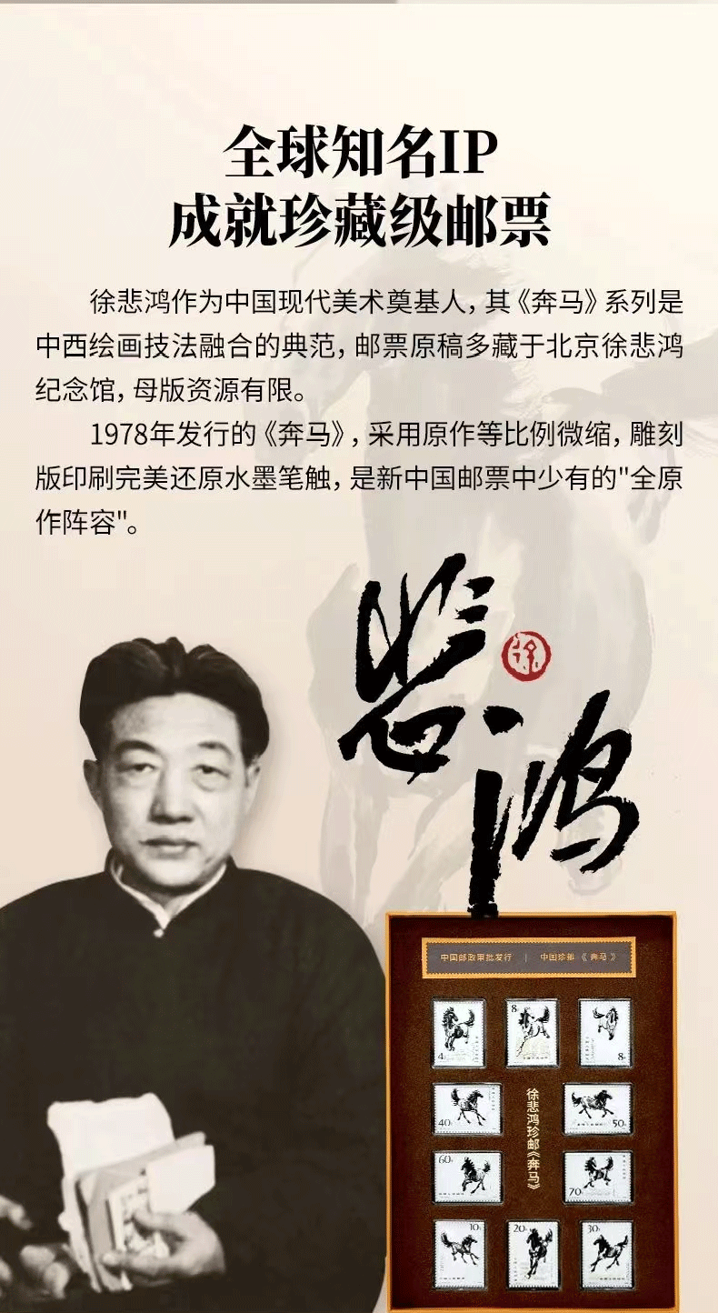热卖中!!【中国邮政再次审批发行】中国珍邮·徐悲鸿奔马纪念大全套