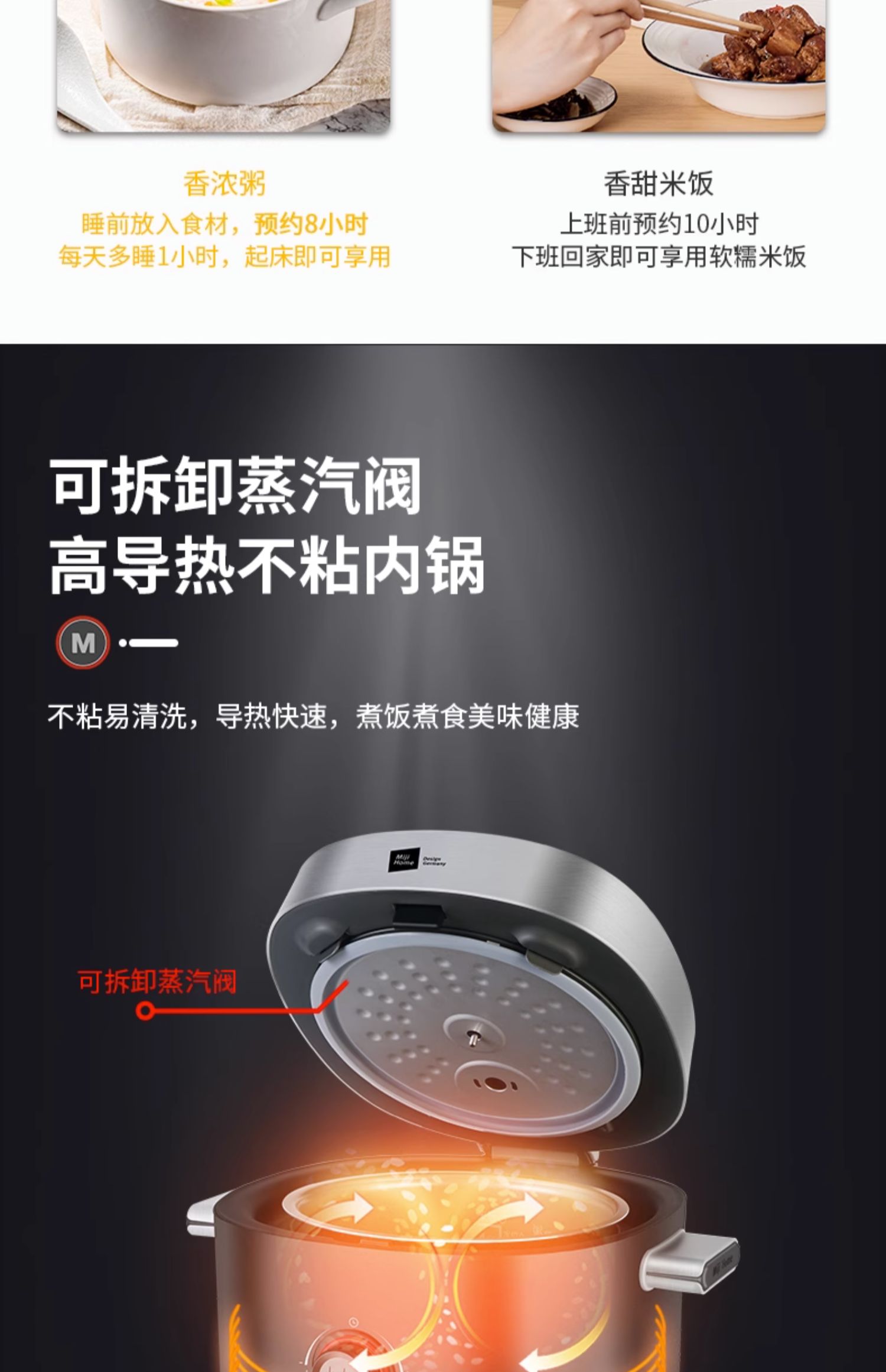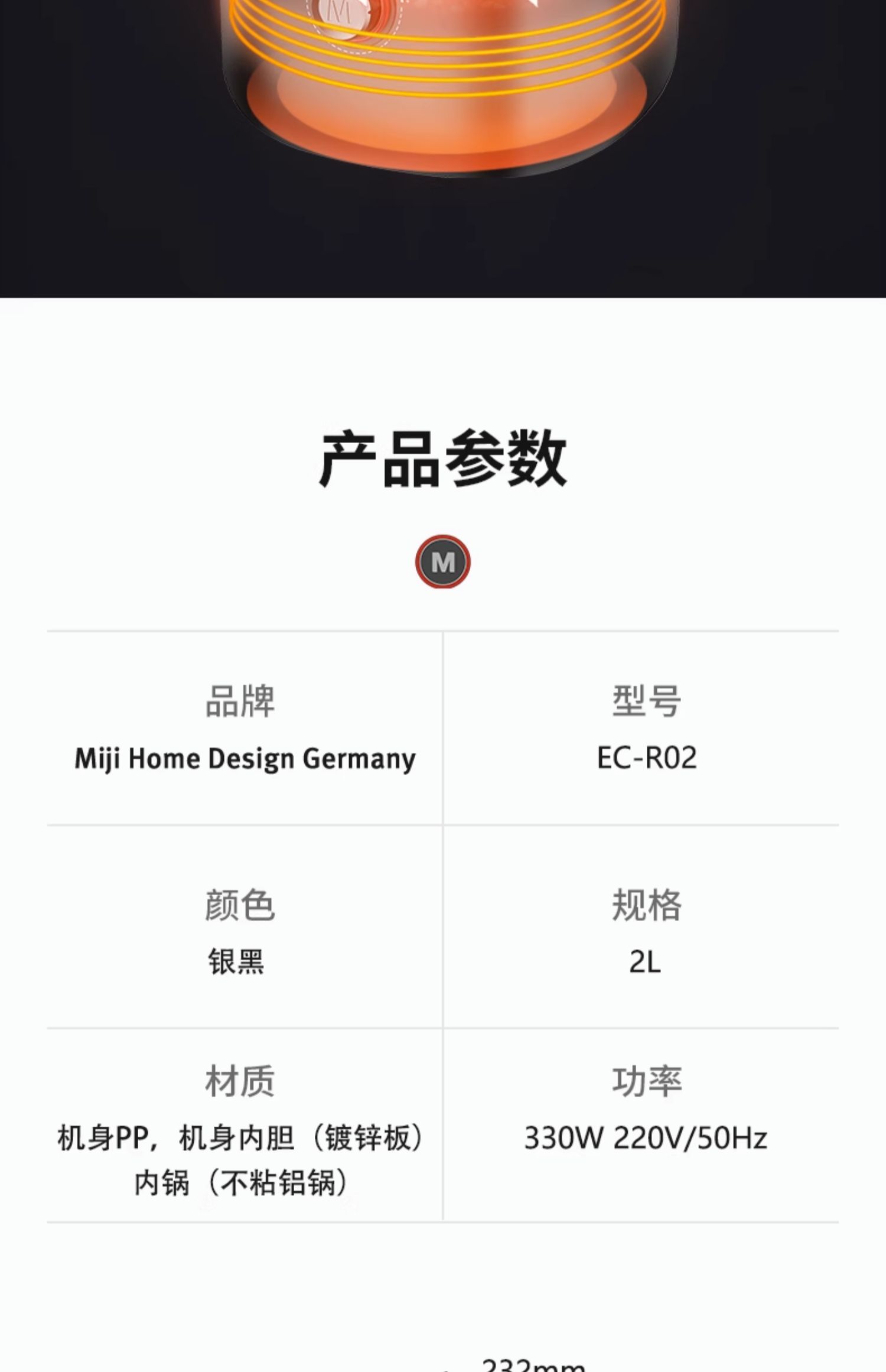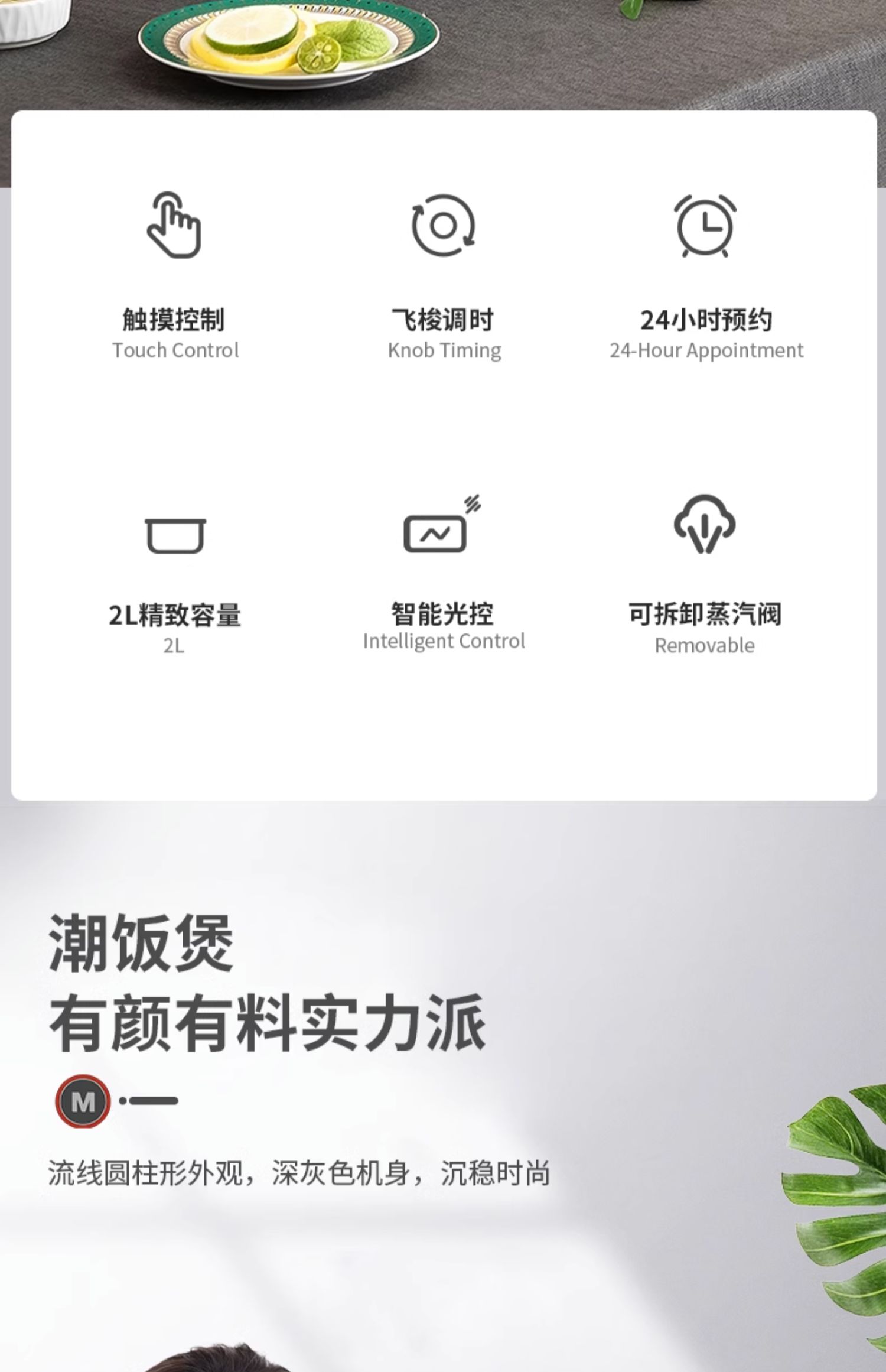 【样品特惠5折,仅2个无原包装,无货退款】米技生活电饭煲家用多功能智能触控煮饭锅2L