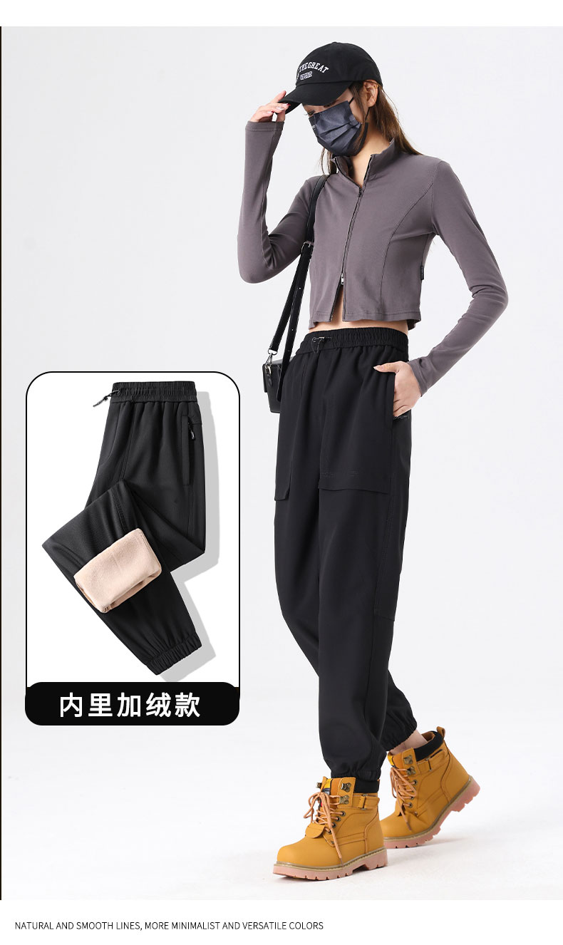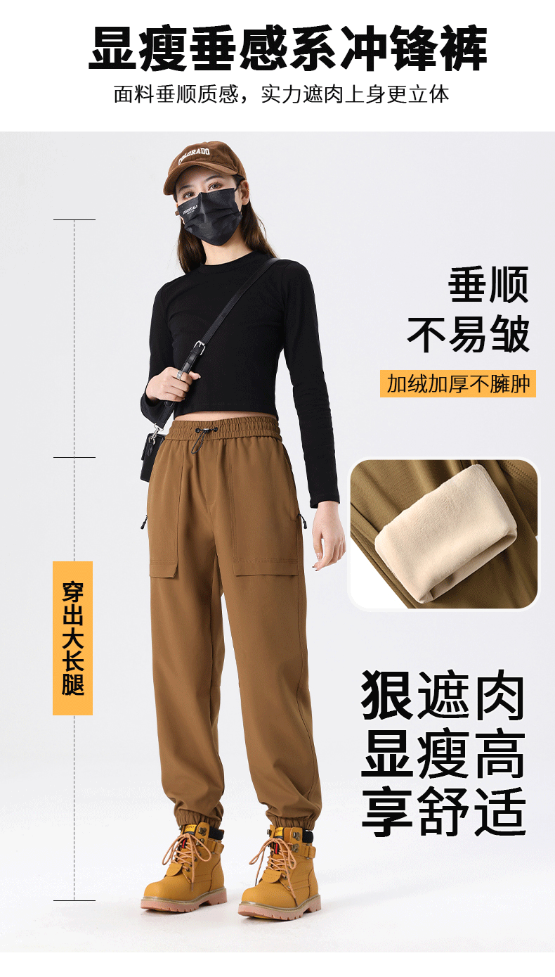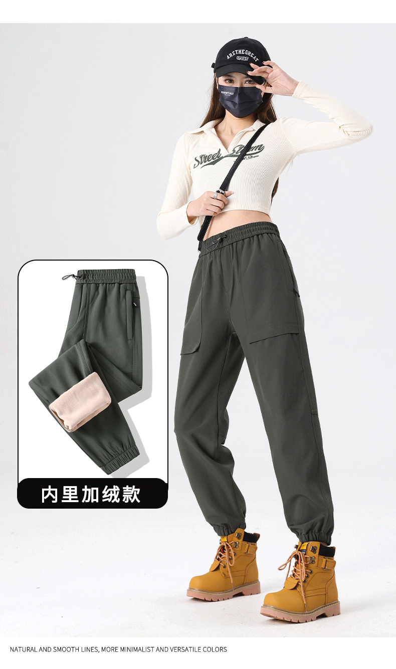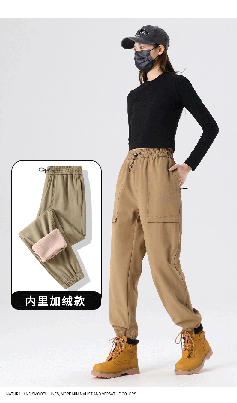 LUCKY DEER/幸运鹿情侣款防风防泼水加绒保暖休闲工装裤