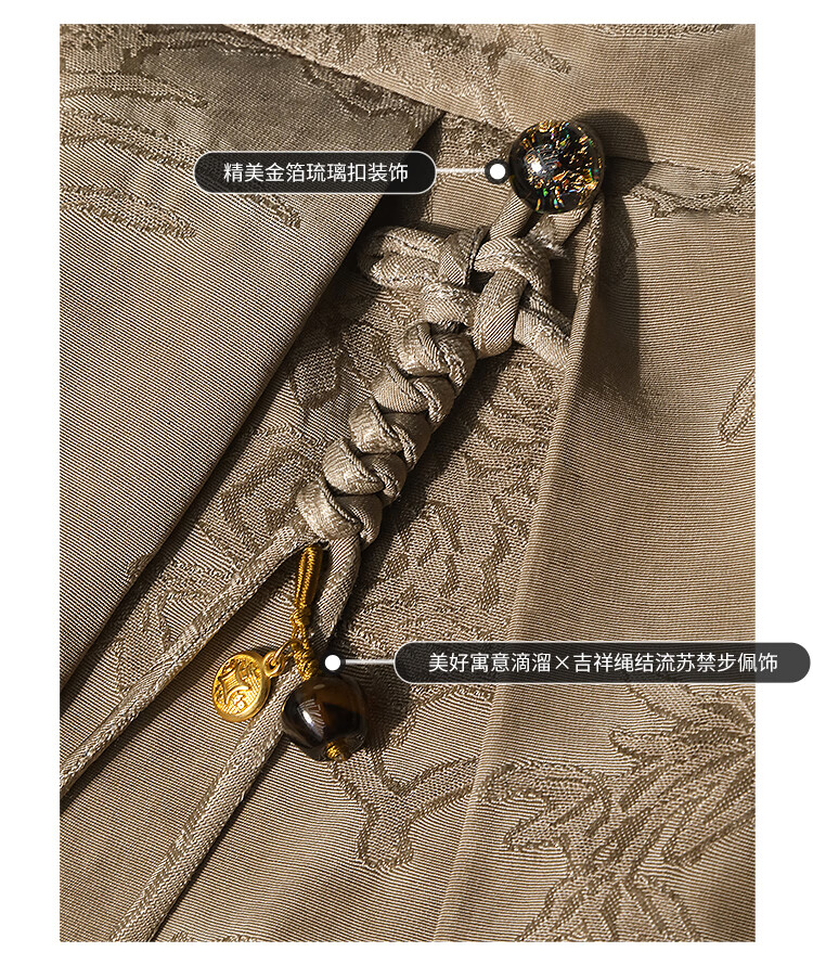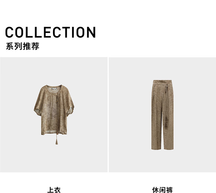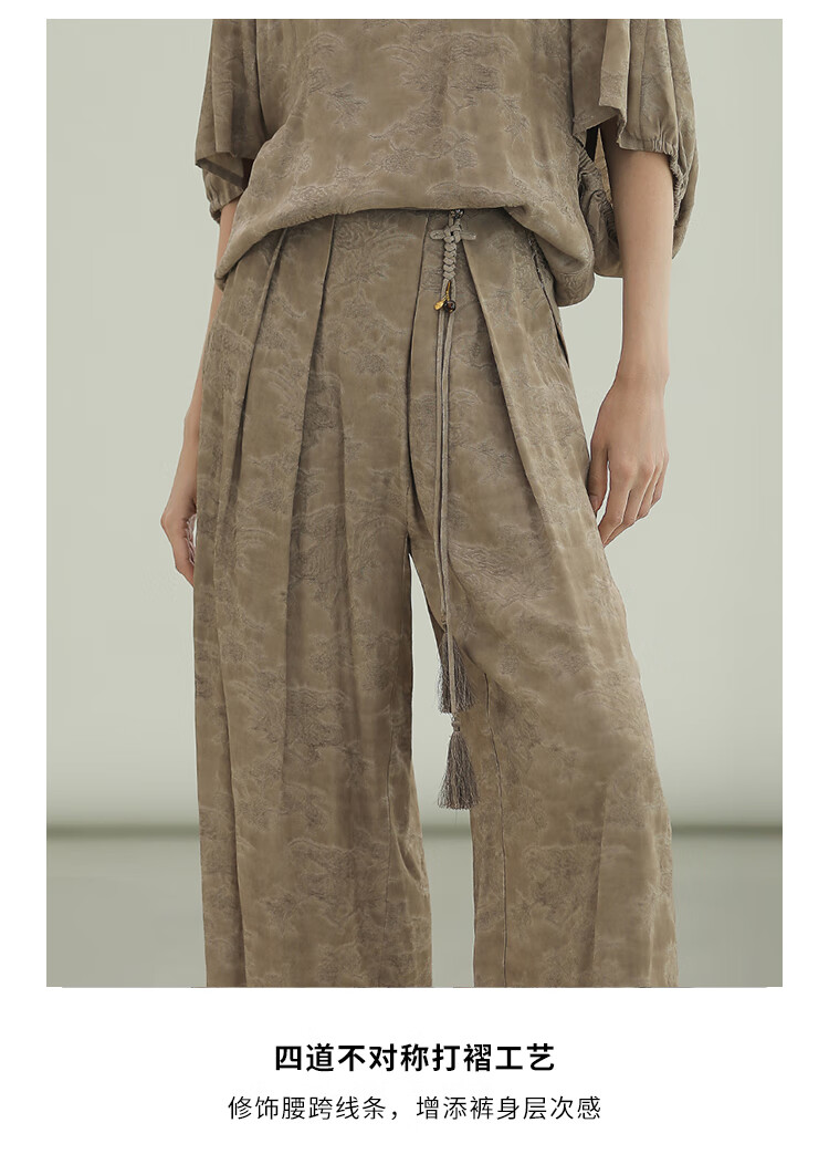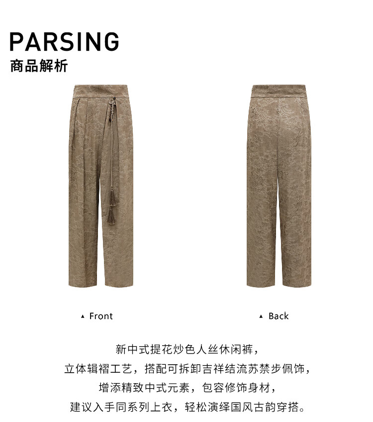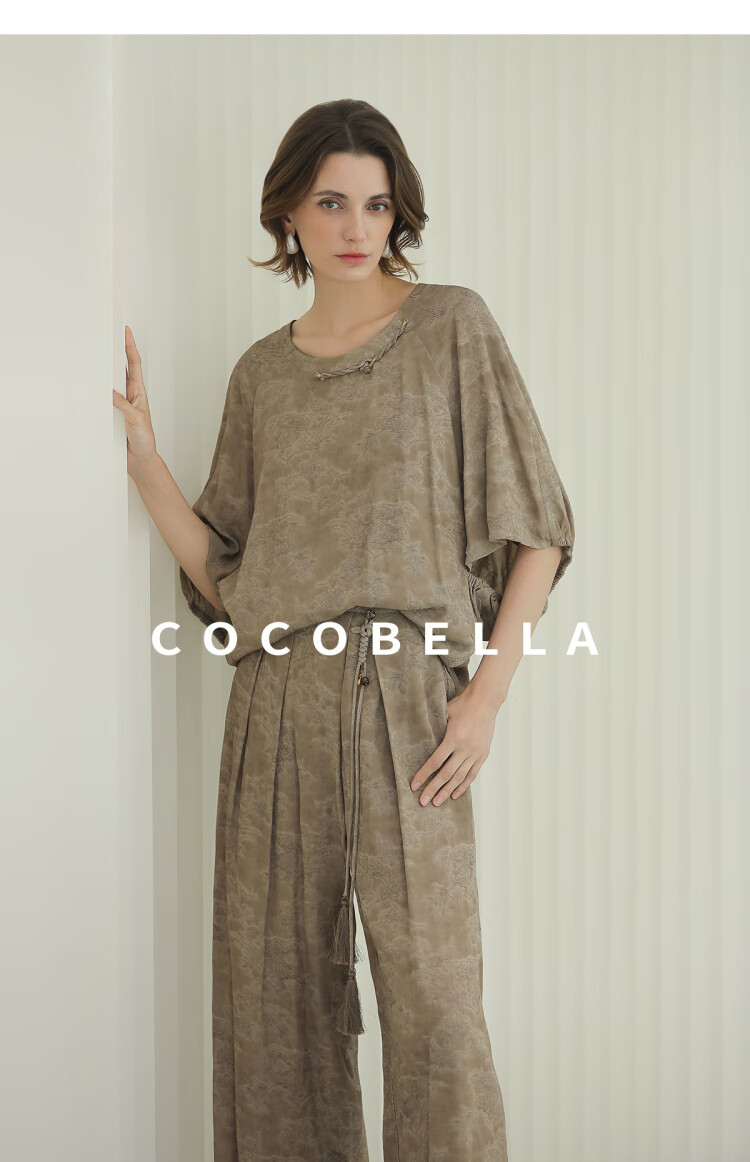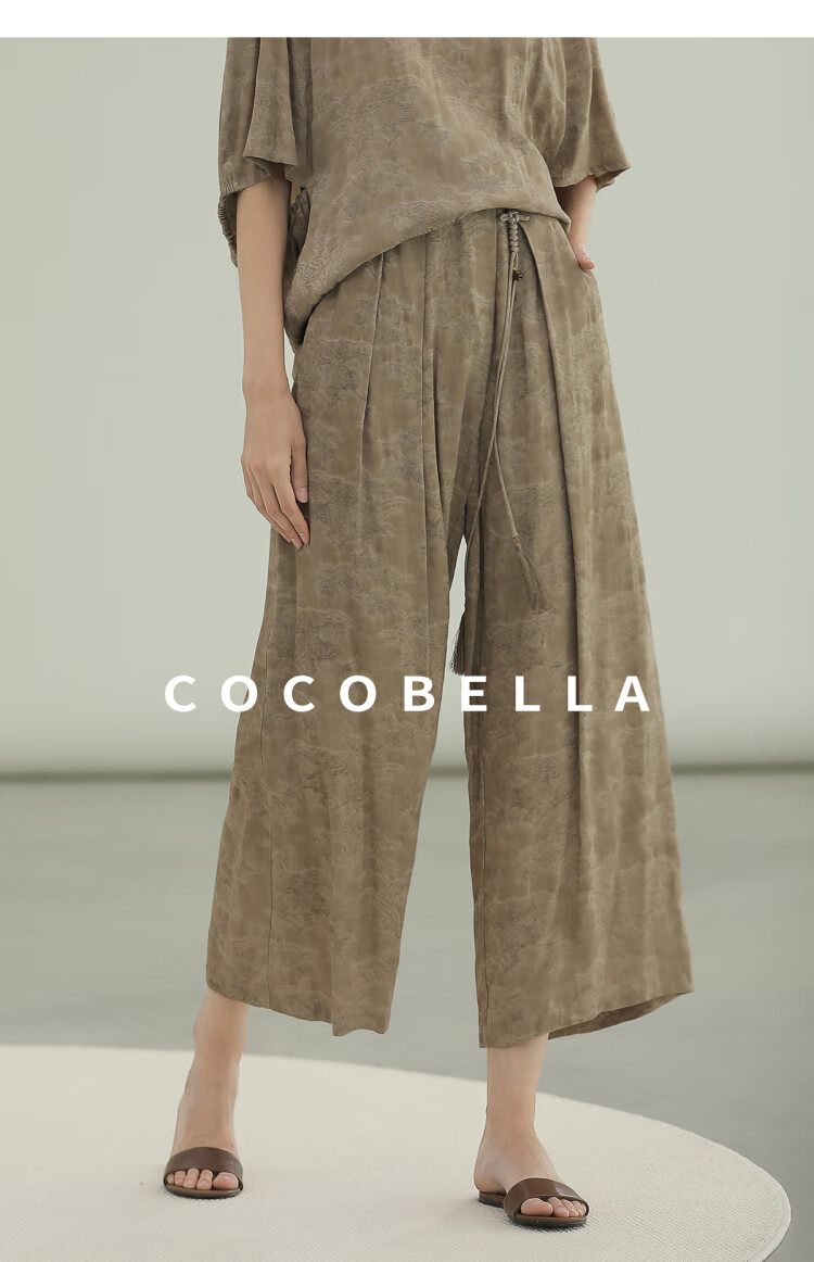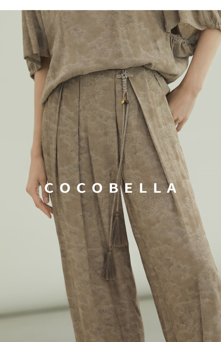 COCOBELLA[100%人丝]新中式提花炒色25夏盘扣流苏休闲裤PA3022