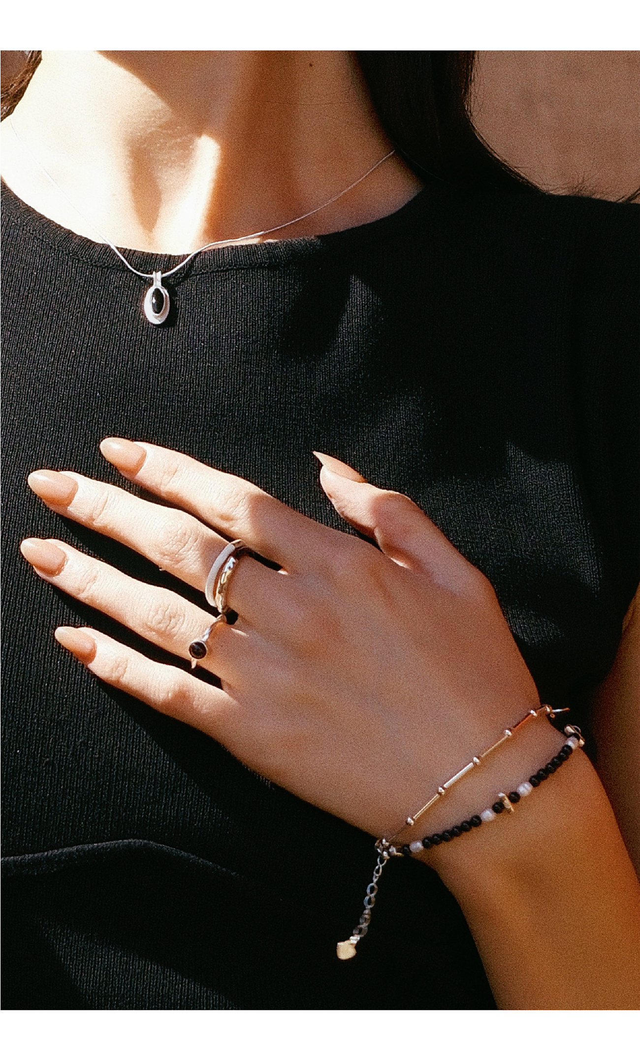 【夏季新款】alodia.co 品牌直发 夜珀黑玛瑙手链 925银万能叠戴素链百搭简约清冷感