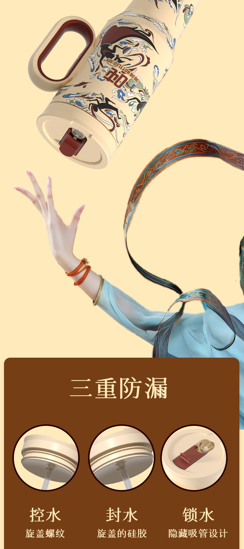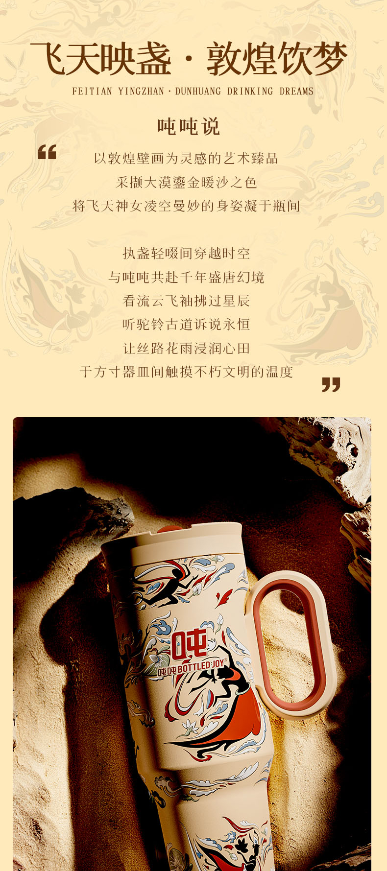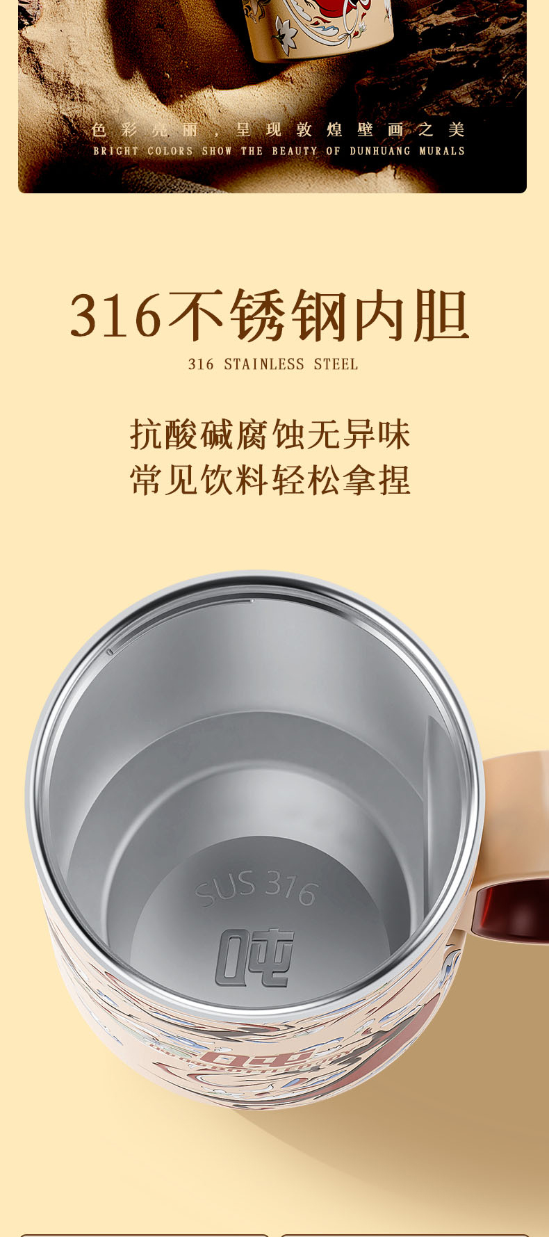 敦煌霸气吨吨飞天暖沙保温杯316不锈钢内胆长效保温保冰