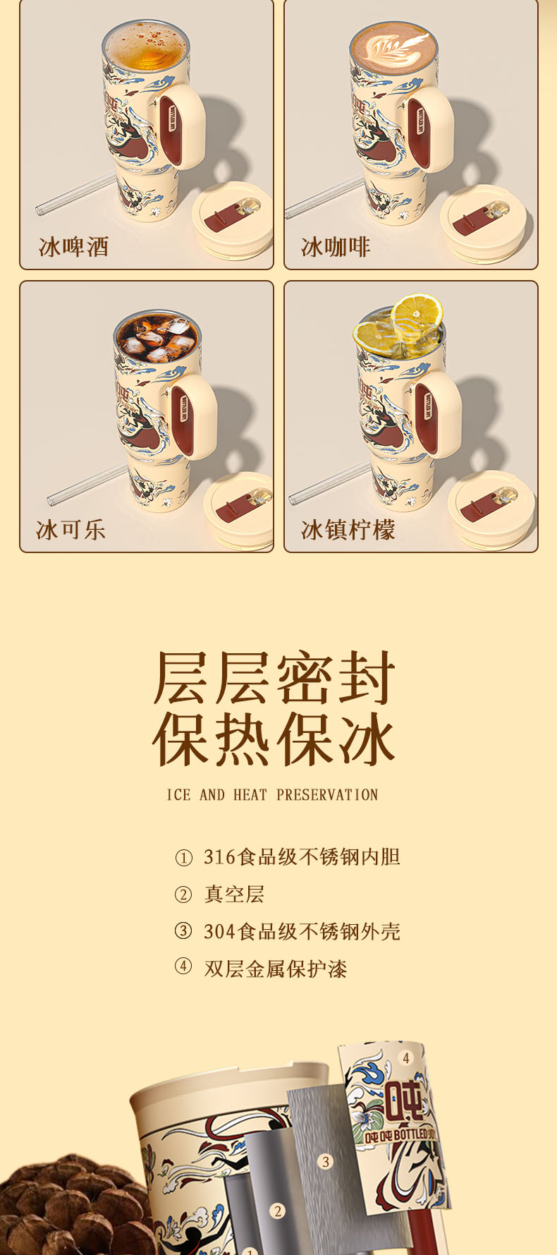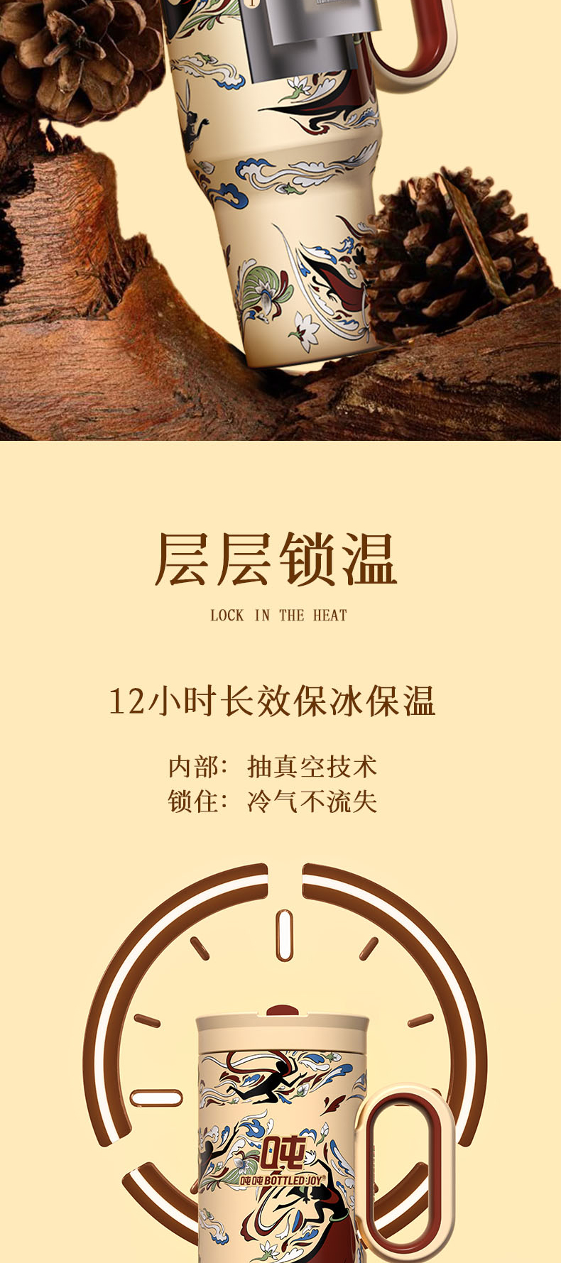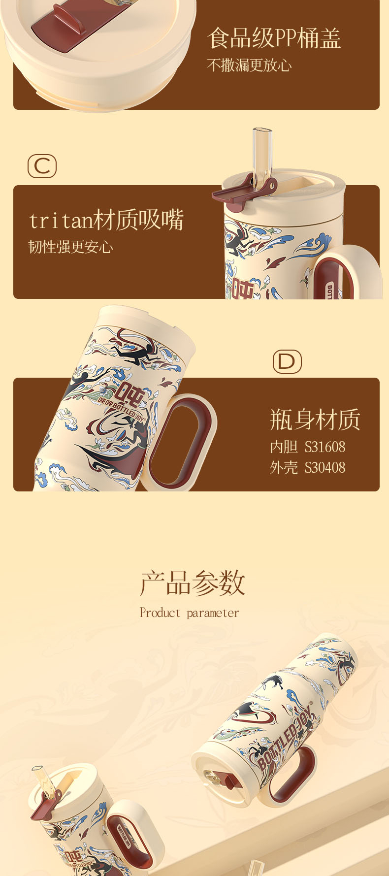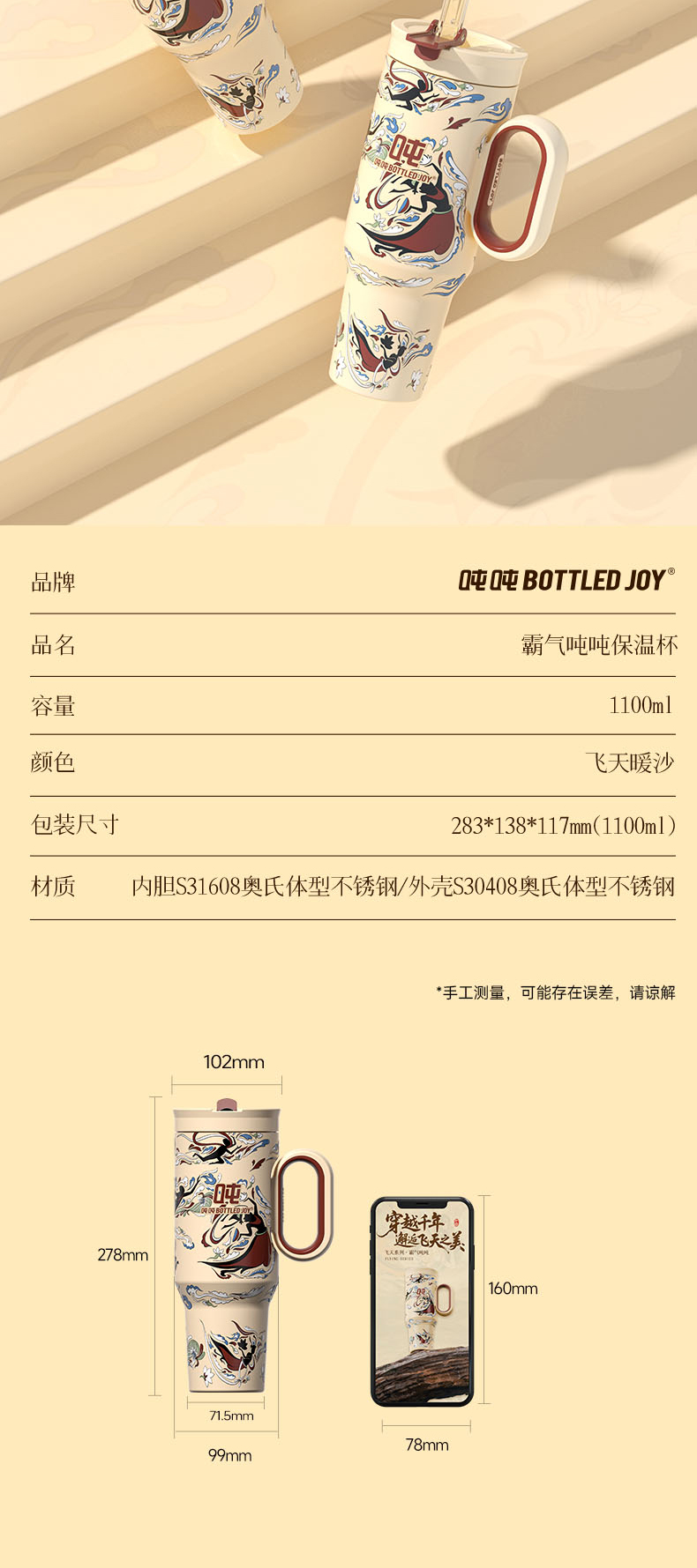 敦煌霸气吨吨飞天暖沙保温杯316不锈钢内胆长效保温保冰