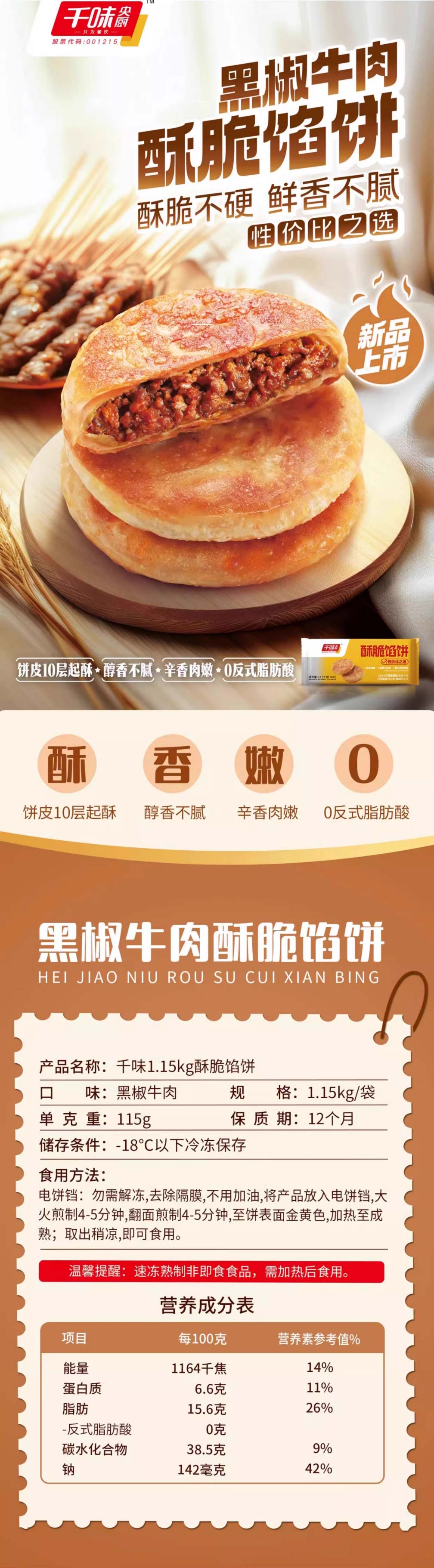 J千味央厨酥脆黑椒牛肉馅饼 1.15kg/袋(10片) 6袋/件