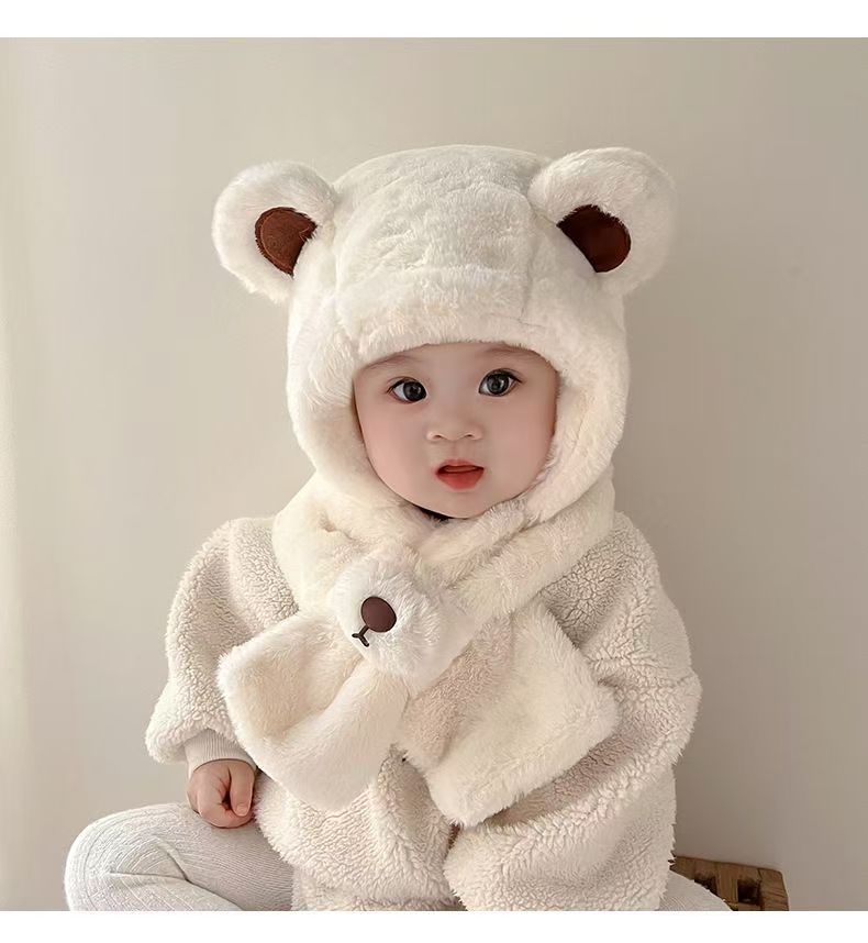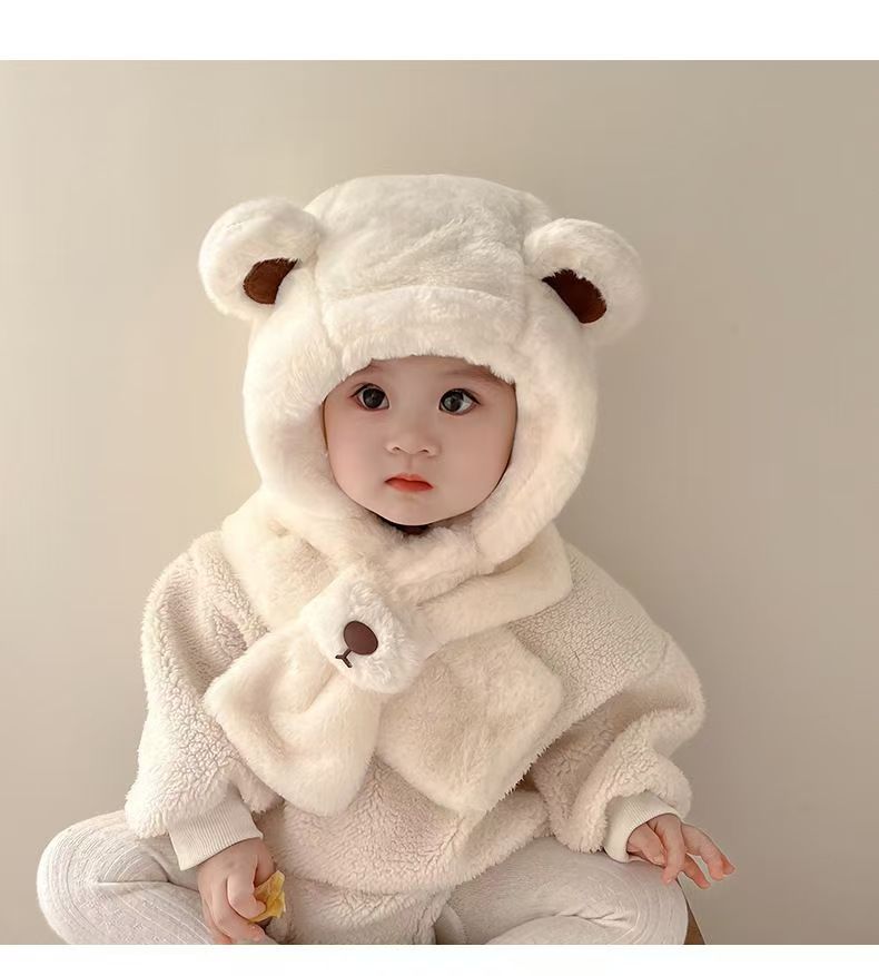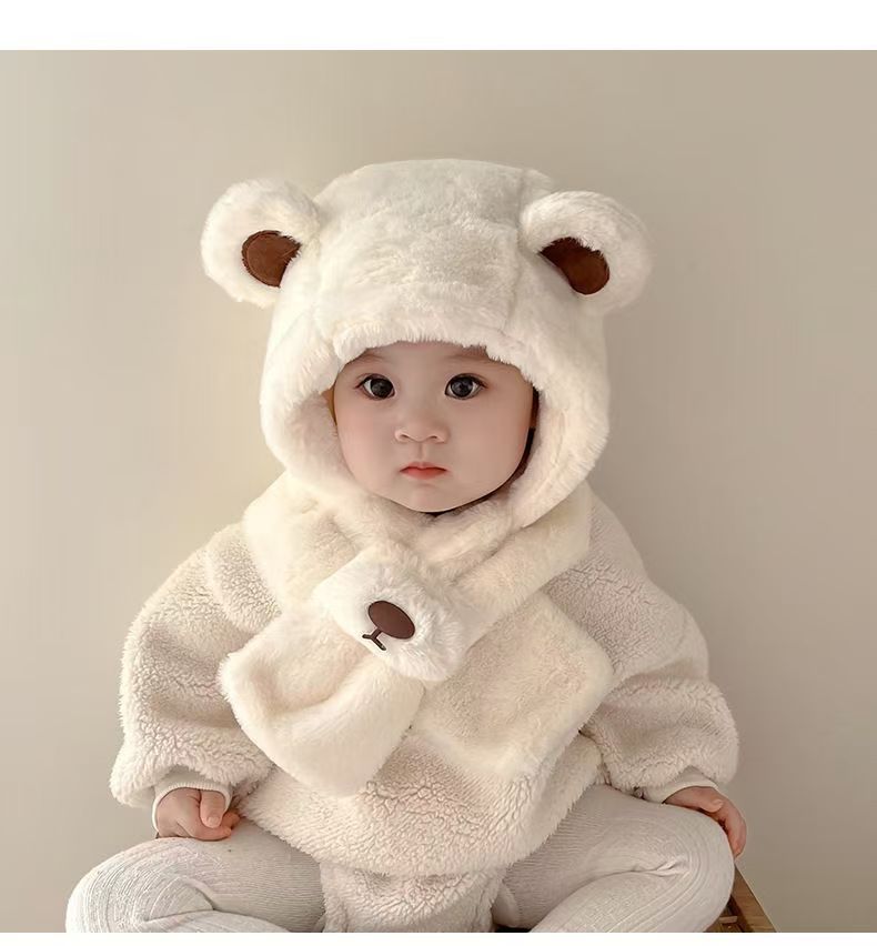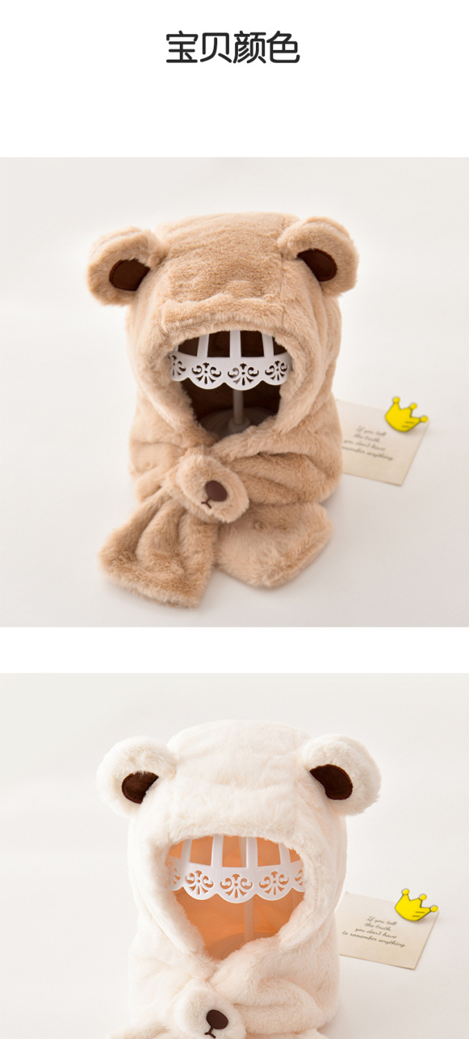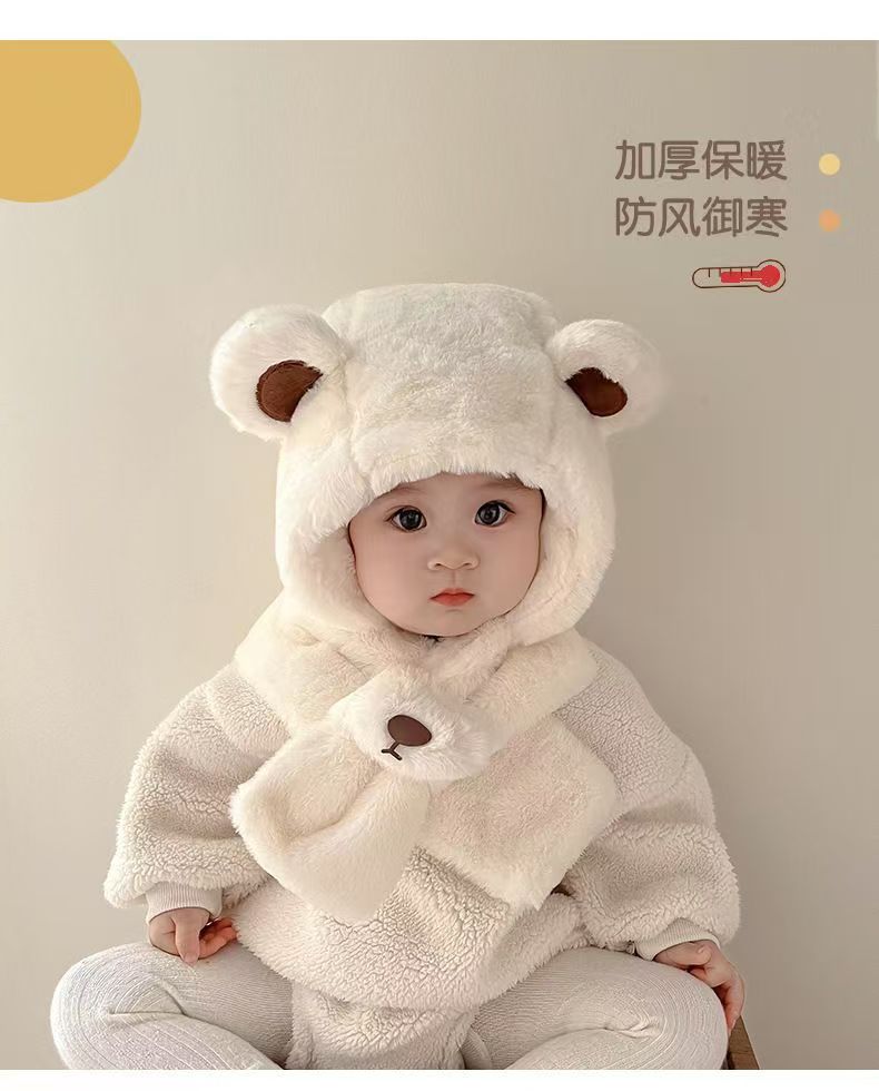 儿童帽子围巾一体帽 冬季加绒加厚宝宝护耳帽 男女孩防风二件套装