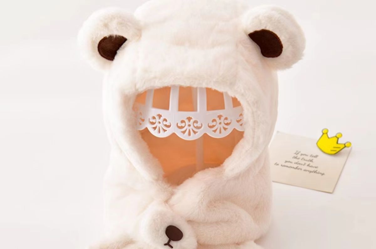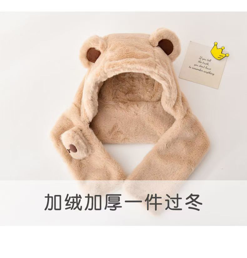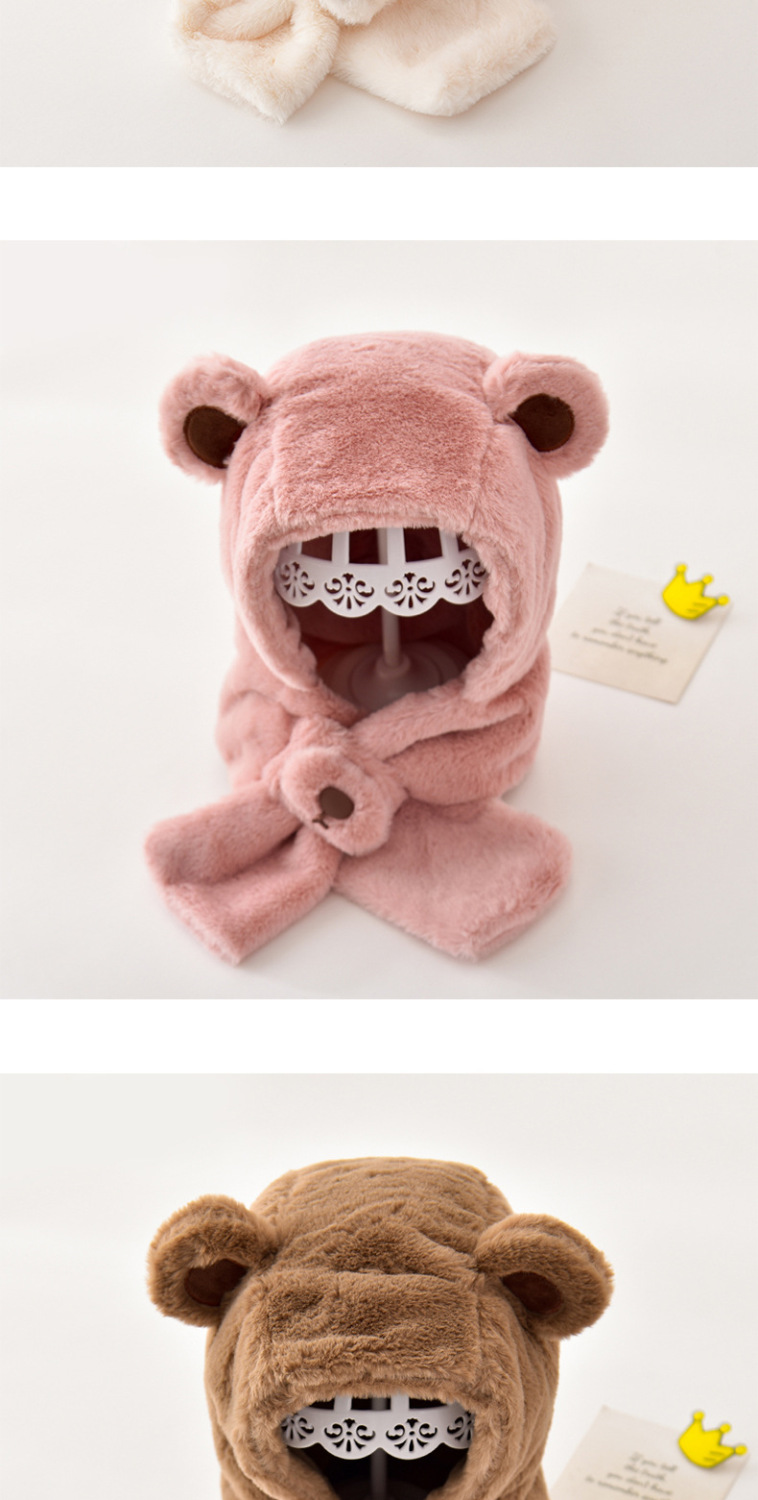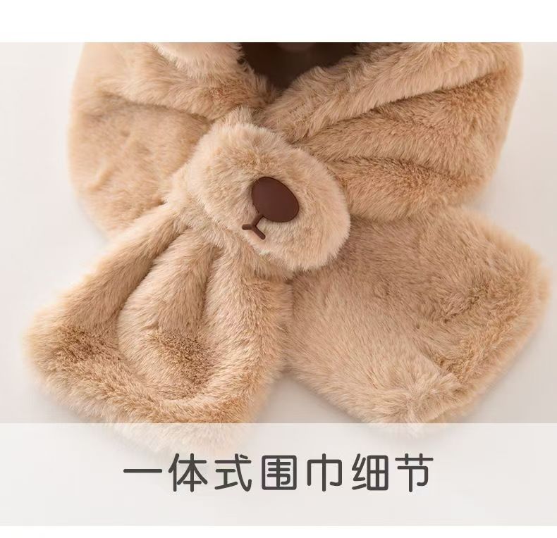儿童帽子围巾一体帽 冬季加绒加厚宝宝护耳帽 男女孩防风二件套装