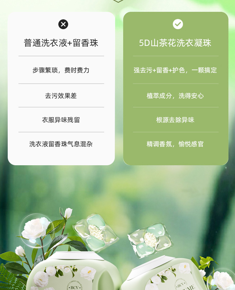 「168颗大桶!三合一洗衣凝珠」5腔山茶花洗衣凝珠留香珠三合一多效洗衣液去污物居家日用清洁工具