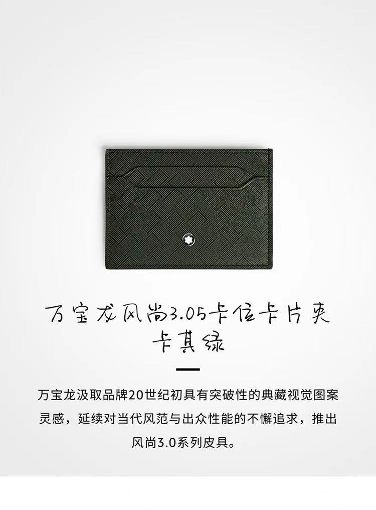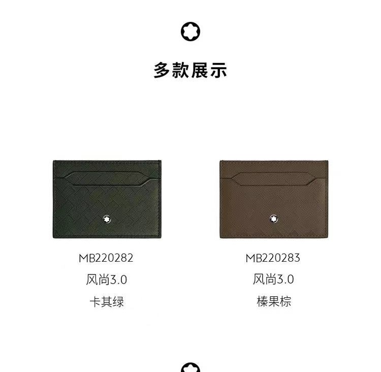 这款卡片夹采用榛果棕色风尚3.0压花皮制成,可收纳5张卡片,正面饰有万宝龙六角白星品牌标识。