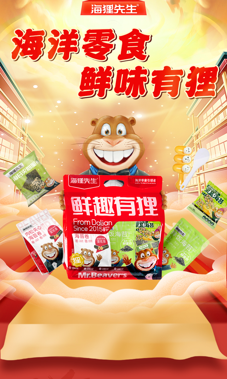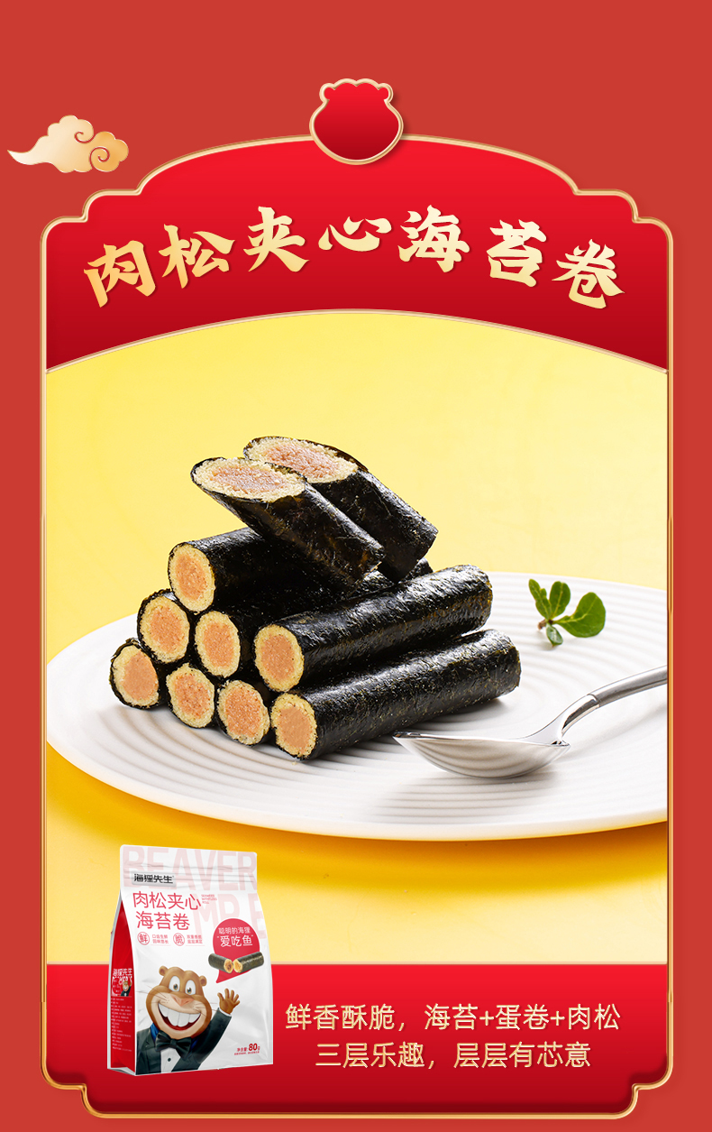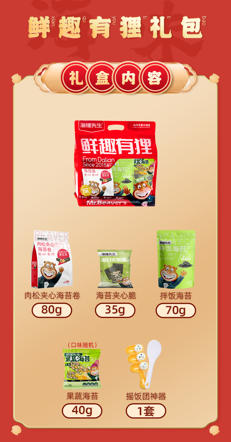 海狸先生海味鲜趣有狸儿童海苔零食礼包JL-E2(225g+送摇饭团神器)