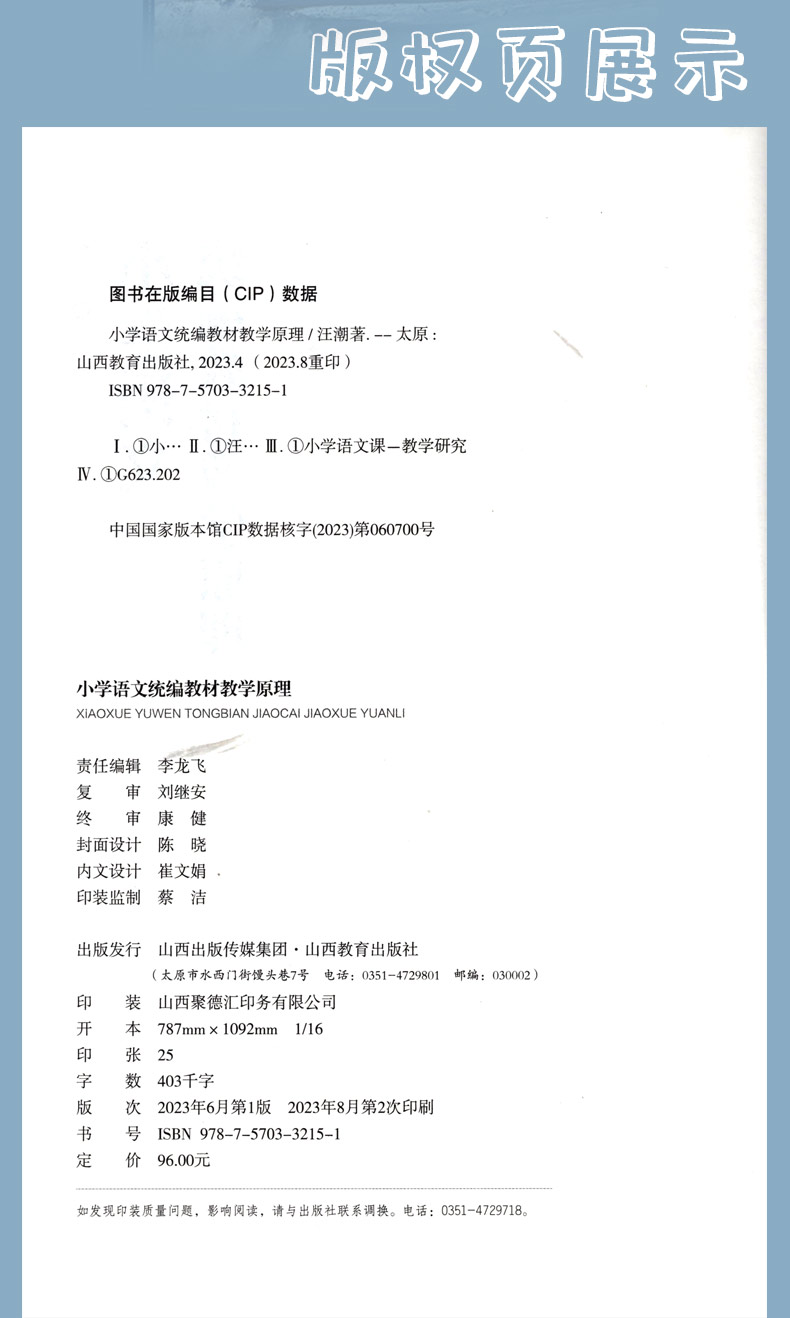 正版 小学语文统编教材教学原理 新课标 汪潮著 山西教育出版社