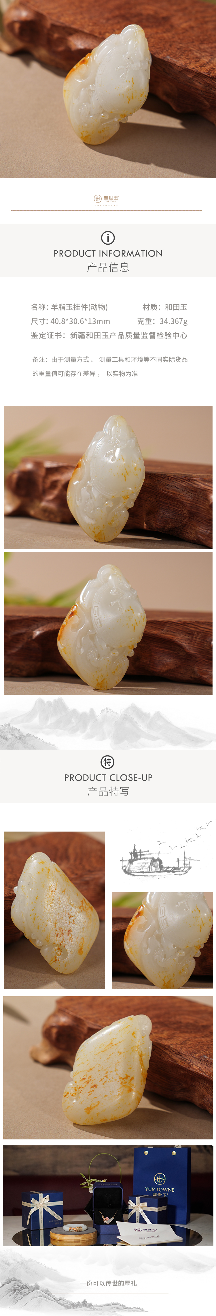 新疆国玉盟世玉羊脂玉挂件(动物)【带证书·顺丰物流】