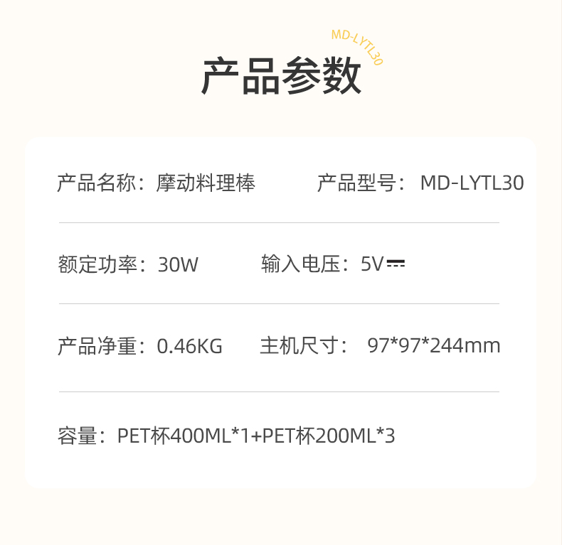 摩动 手持料理棒 MD-LYTL30 (400mL)