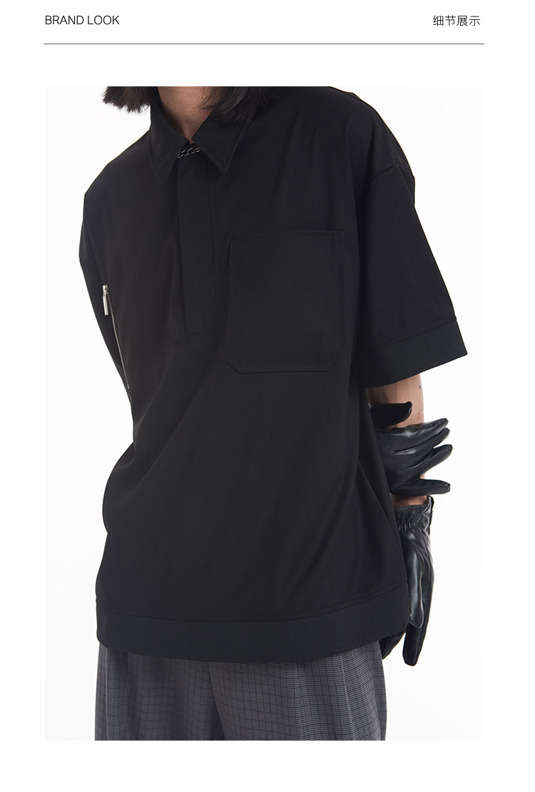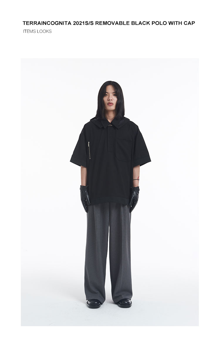 TERRAINCOGNITA2021SS春夏新款可拆卸帽子短袖polo衫宽松廓形衬衫