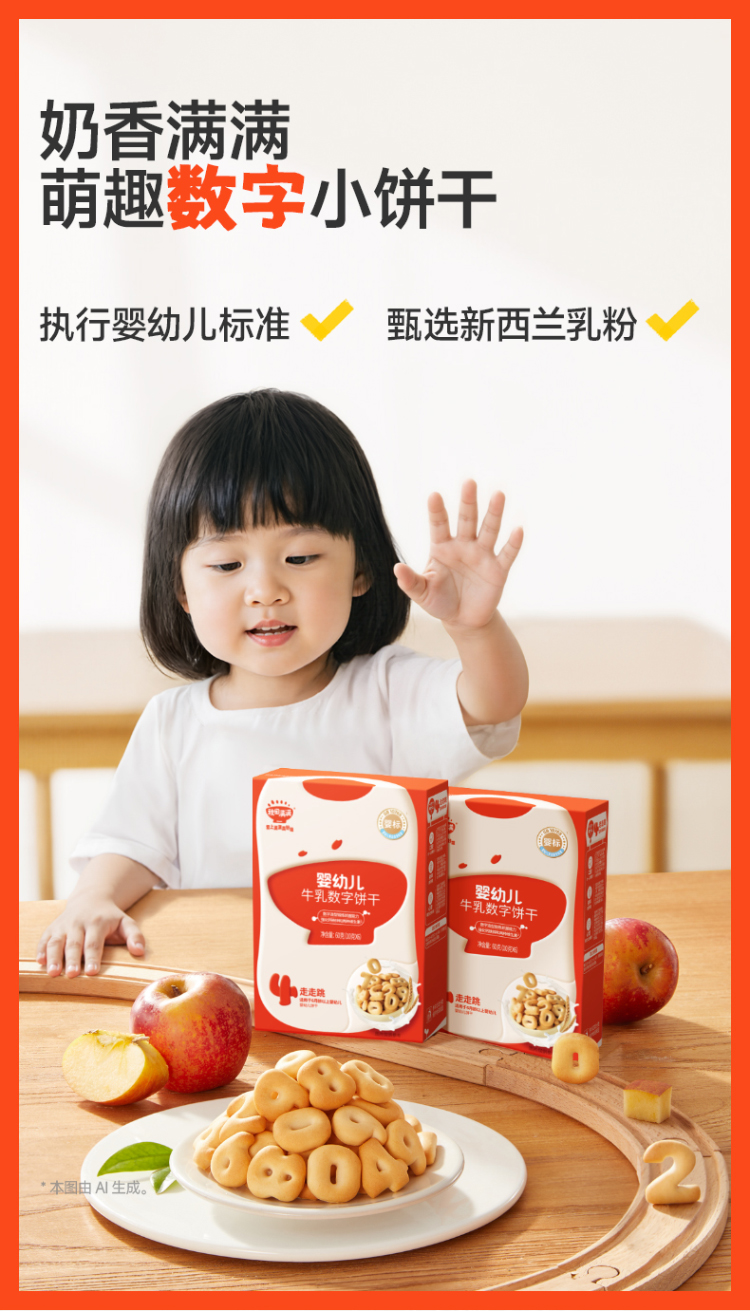 【零食】【婴标】婴幼儿牛乳数字饼干60g,送婴幼儿辅食食谱