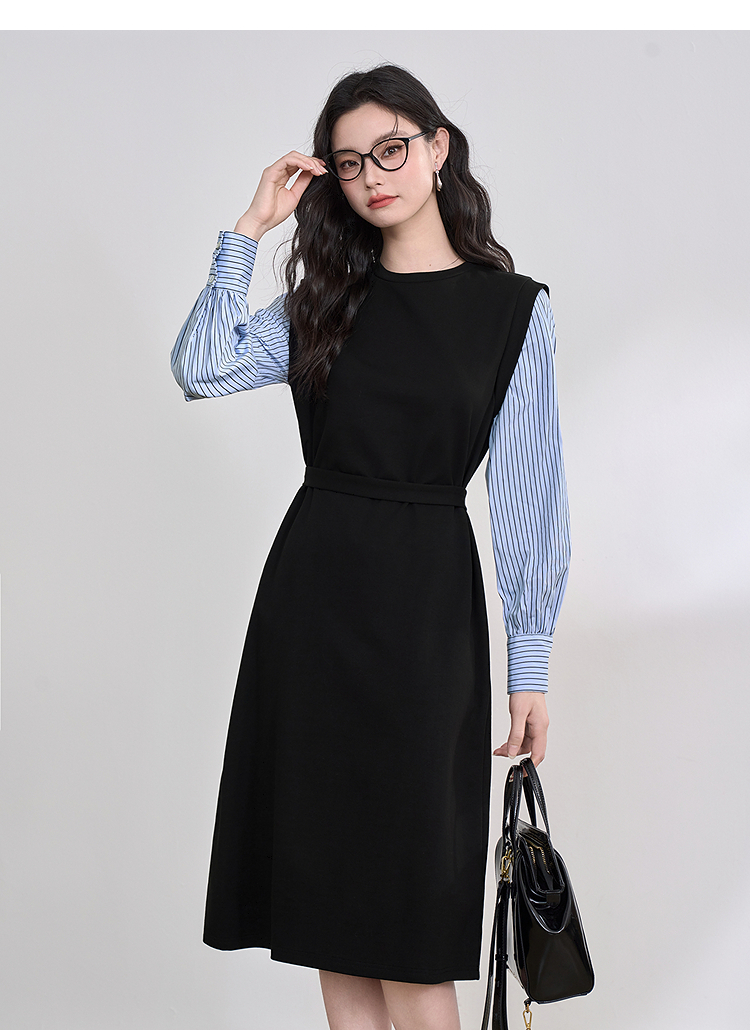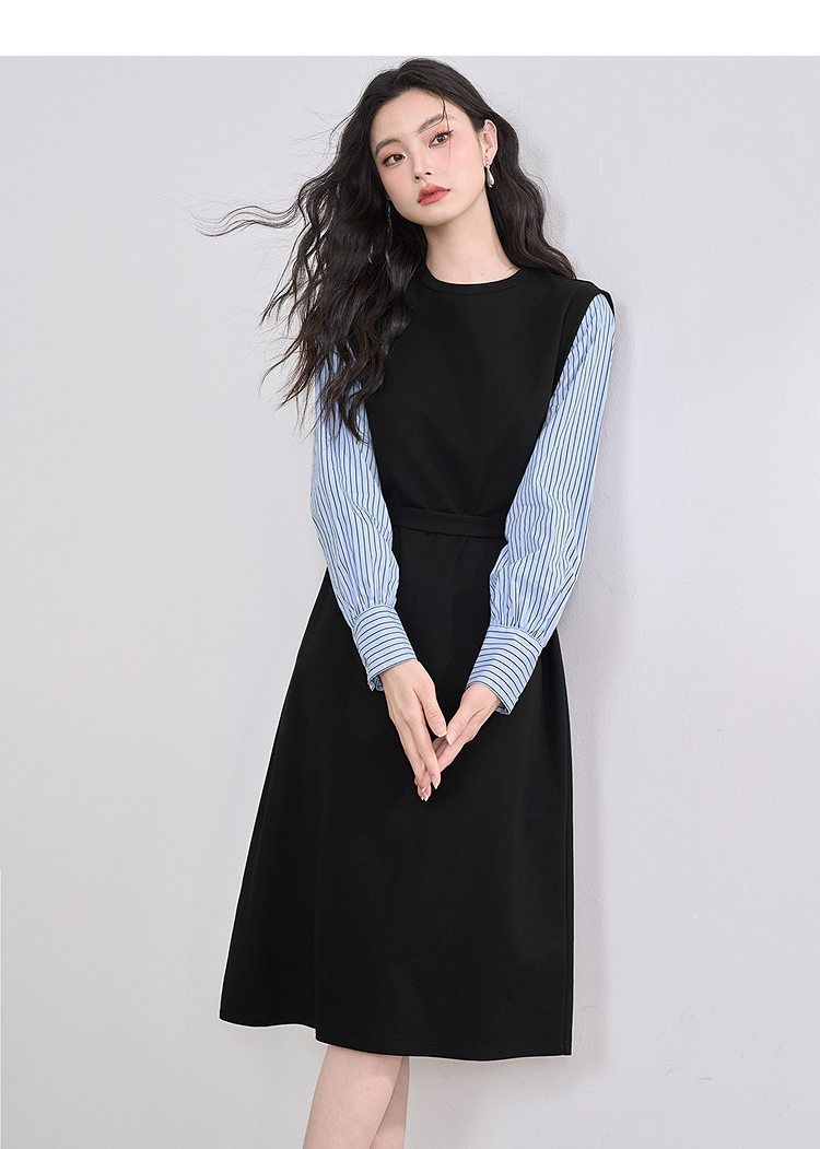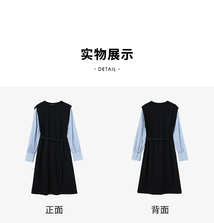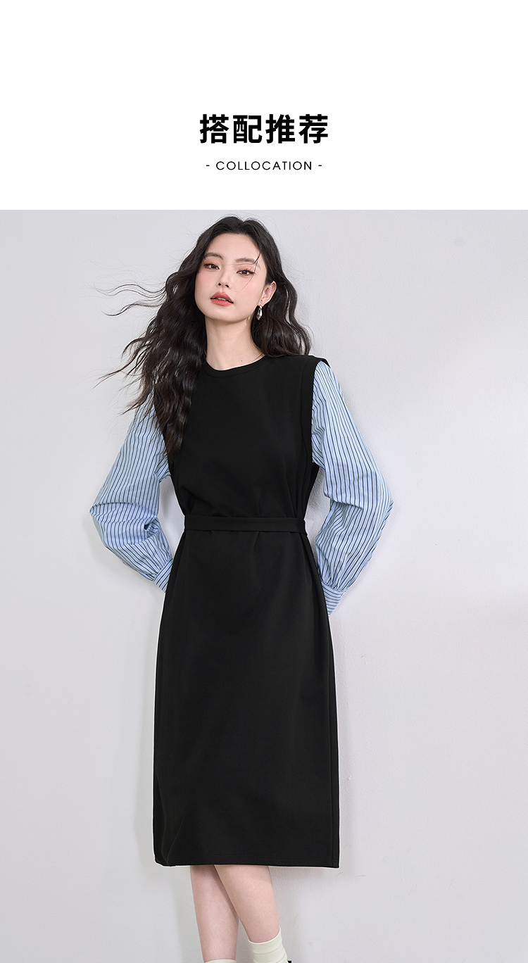 设计感拼接假两件衬衫针织卫衣裙女连衣裙配腰带V0350177