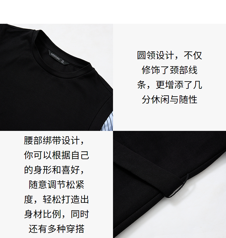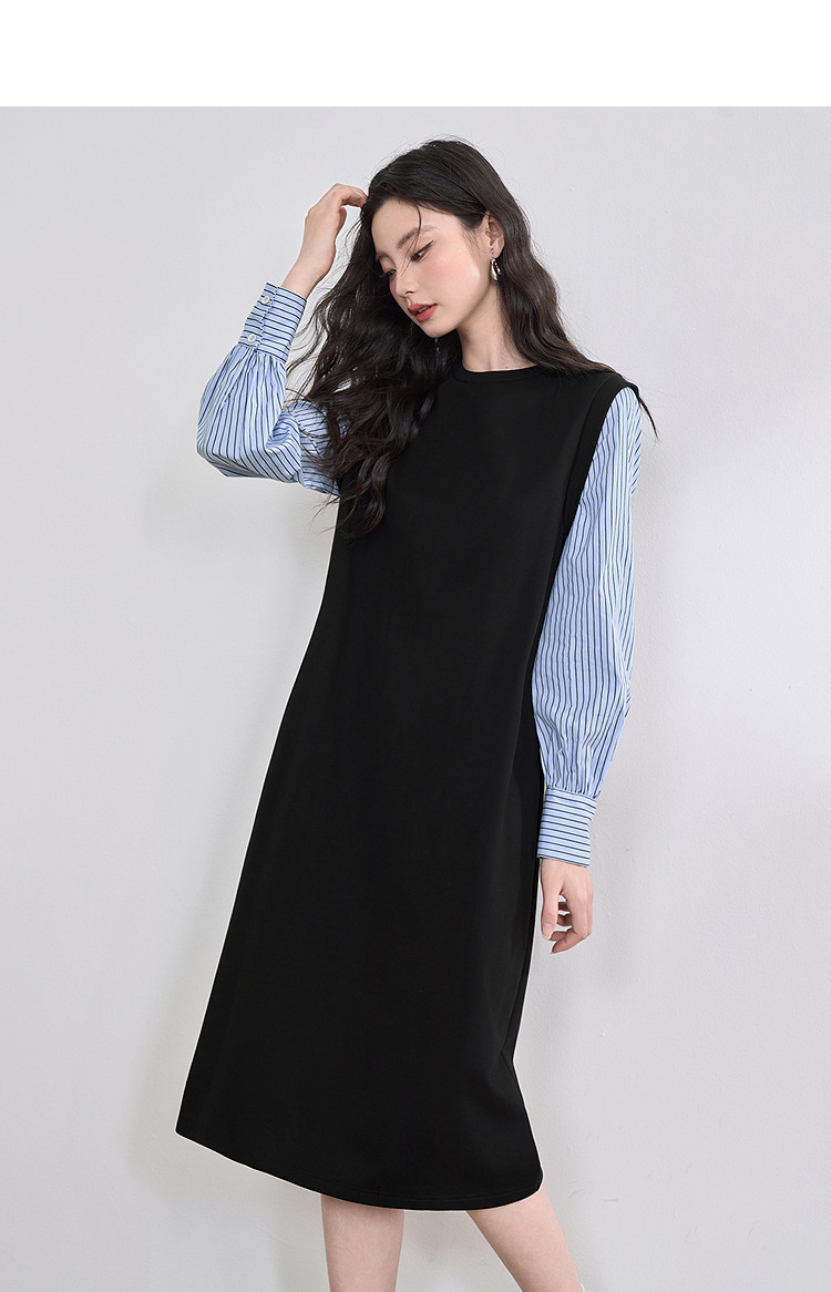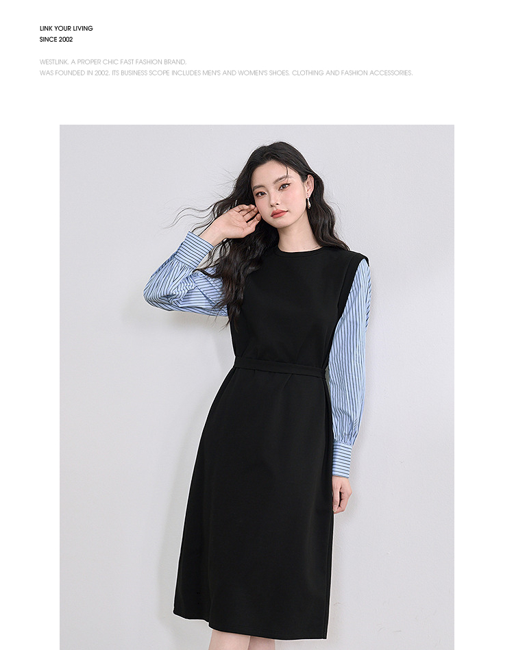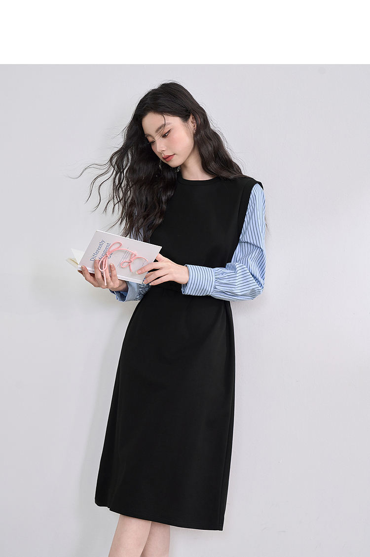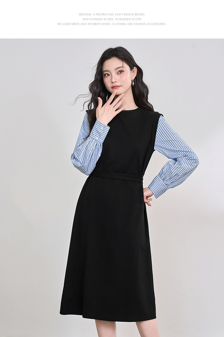 设计感拼接假两件衬衫针织卫衣裙女连衣裙配腰带V0350177