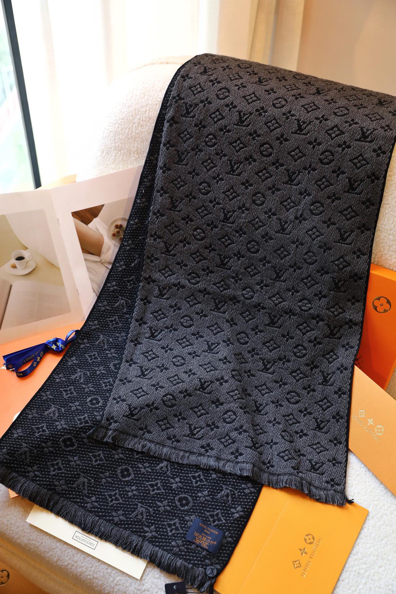 lv路易威登男款围巾-炭黑