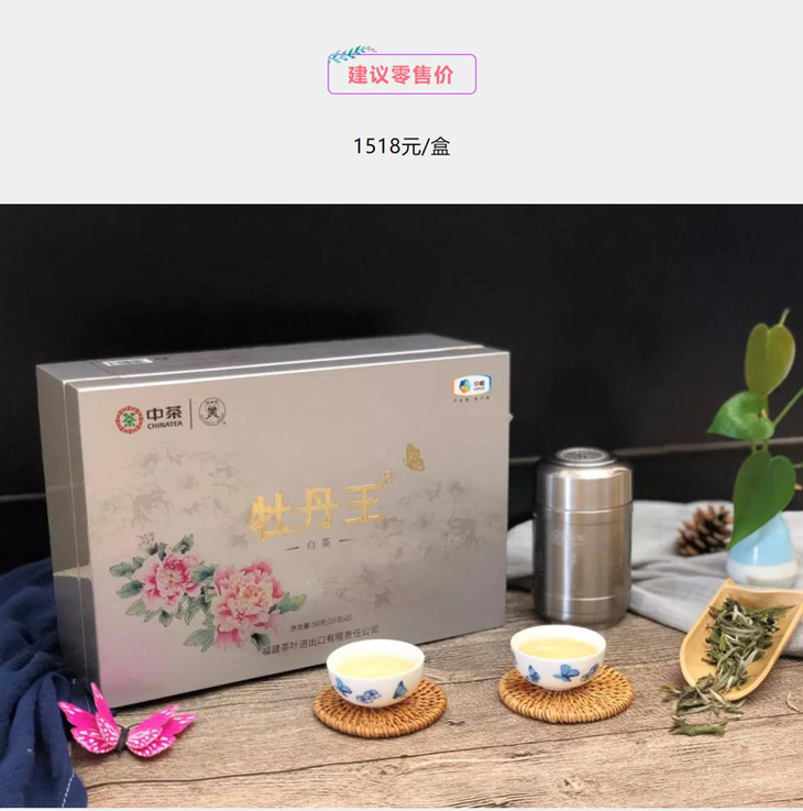 《中粮-中茶》白茶 蝴蝶牡丹王2听装礼盒(50g)