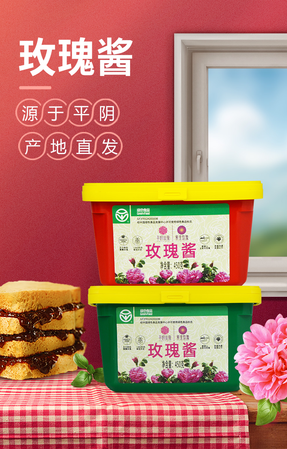 450g玫瑰酱白砂糖酱(红盒/绿盒)随机发货
