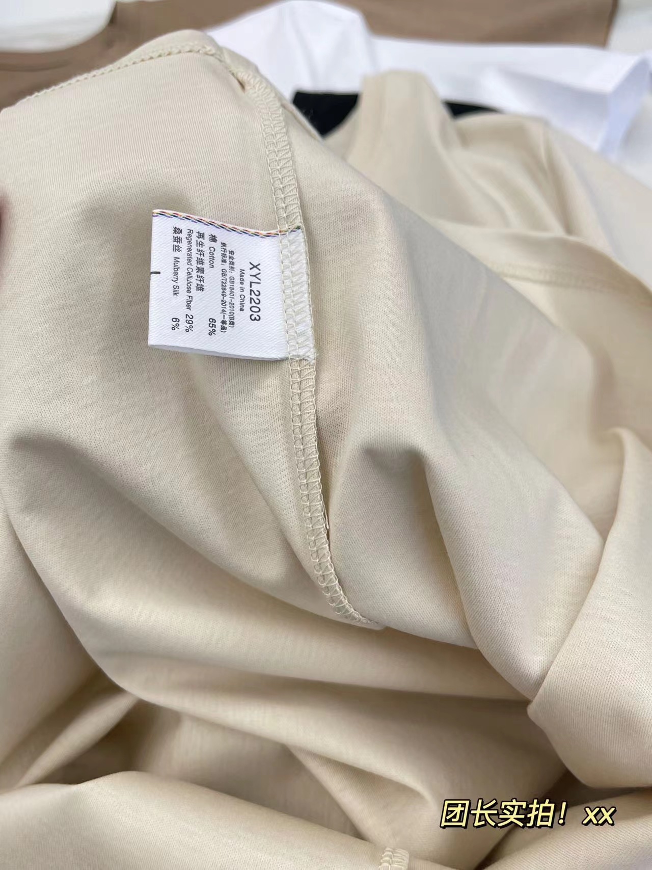 面料65%棉 29%再生纤维素纤维 6%桑蚕丝,