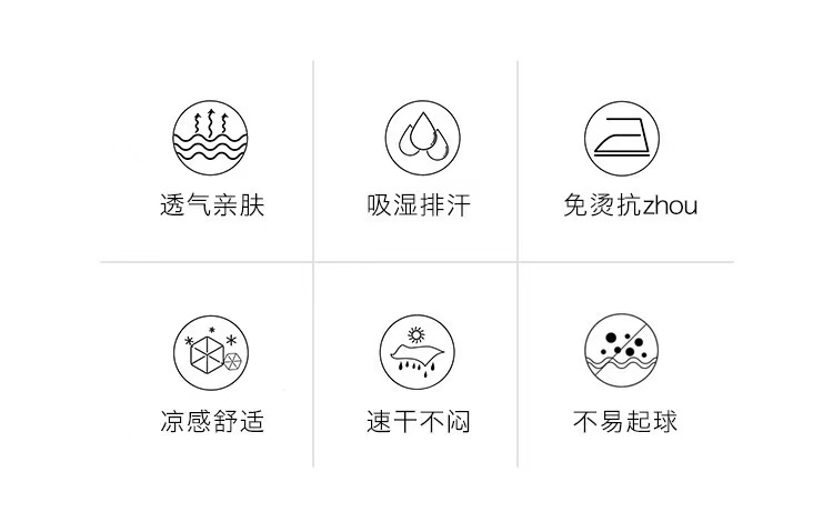 三种原料辅以特殊工艺制作出具有凉感、免烫,速干的面料属性。触感如婴儿肌肤般顺滑,是一款拿到手会有“哇”的惊喜感体验