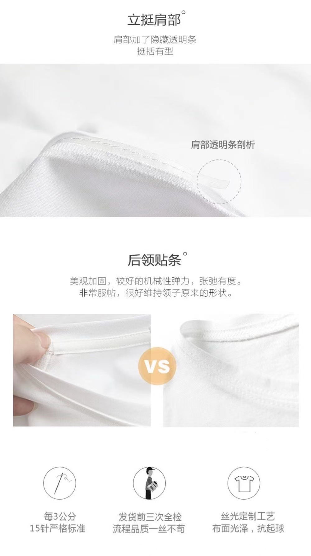 大家最担心的T恤问题就是领口变形,透,还有不挺这几个问题。