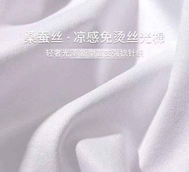 面料采用的是广受好评的凉感免烫桑蚕丝丝光棉。