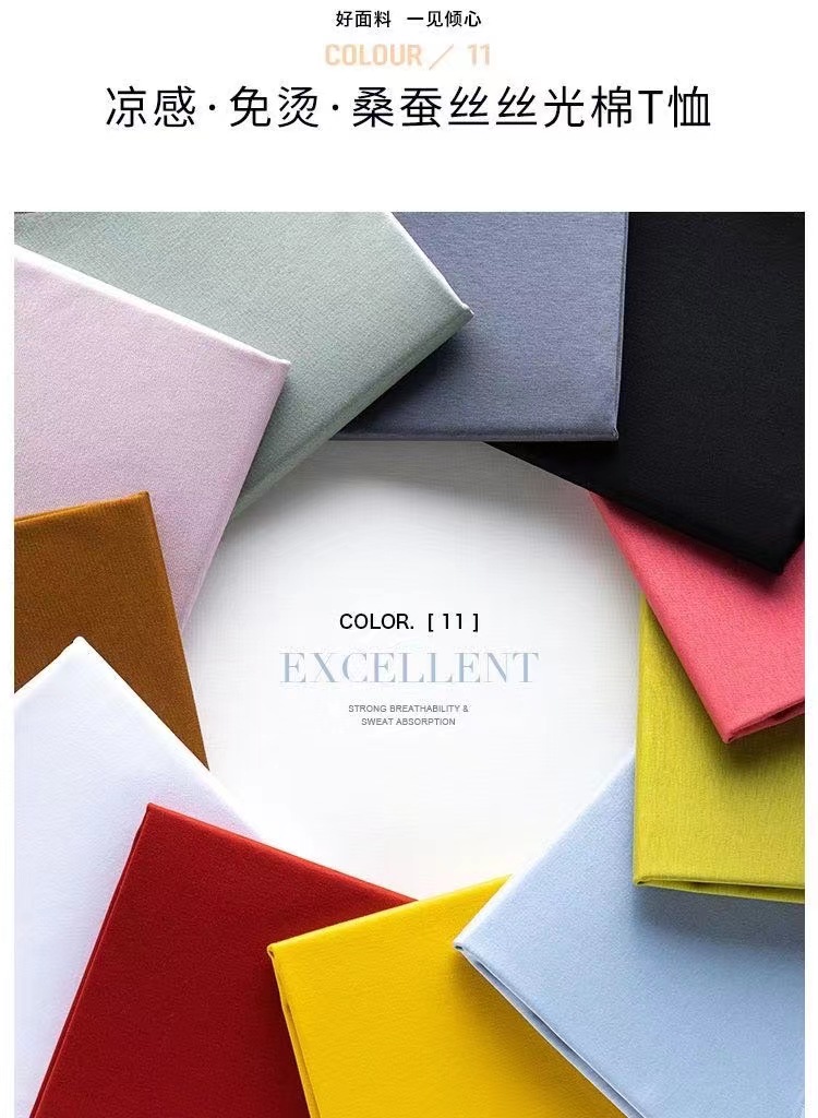一见倾心的面料,一触倾心的手感——凉感免烫桑蚕丝丝光棉T恤。