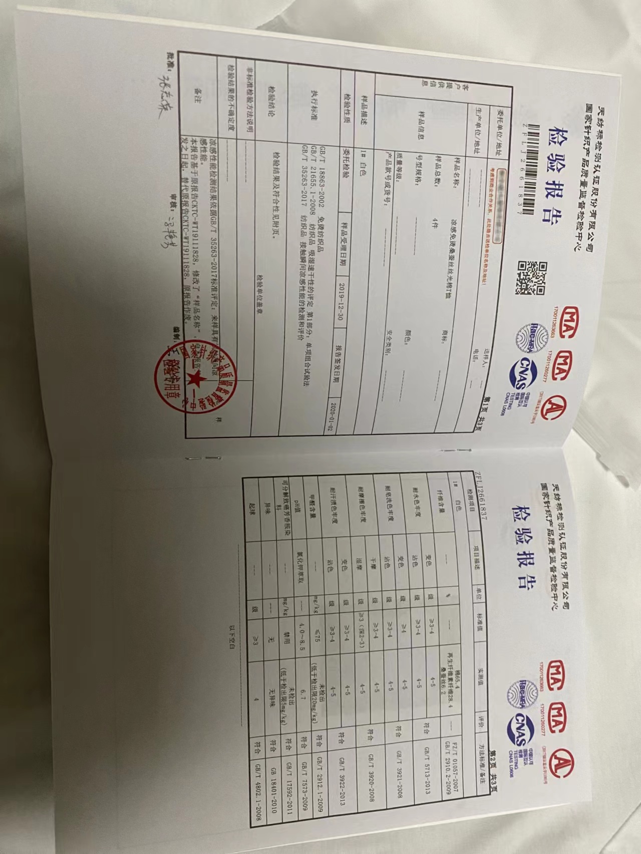 咱们每一件都带质检报告!
