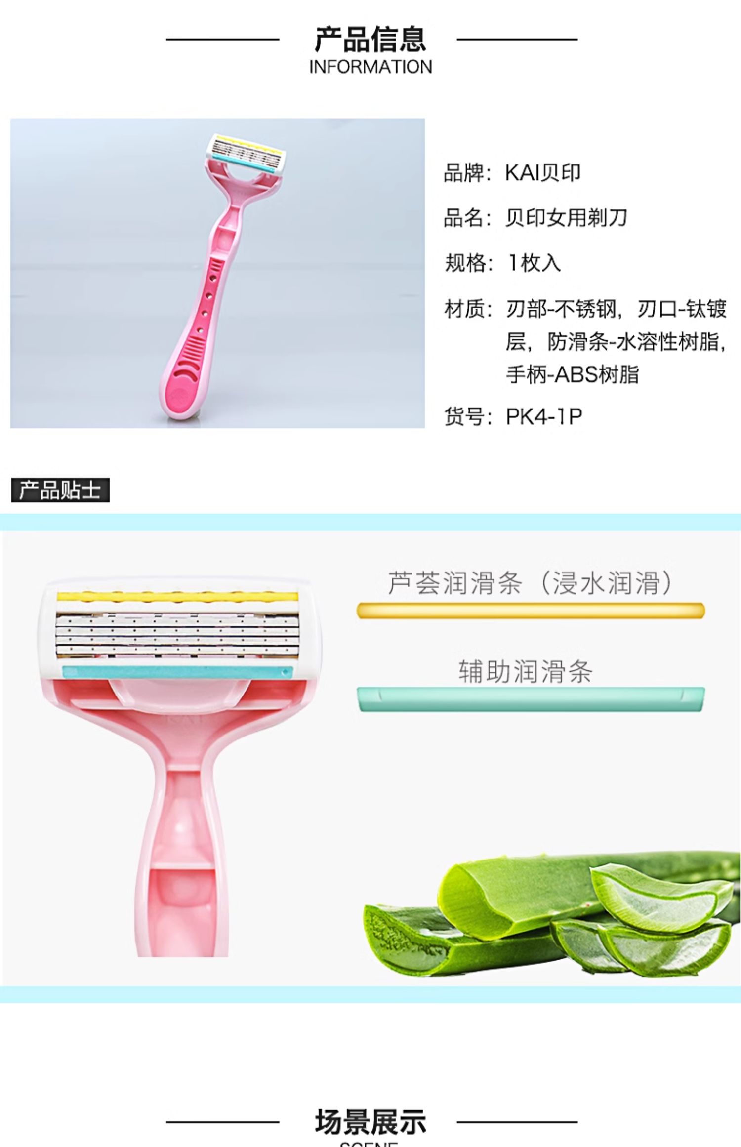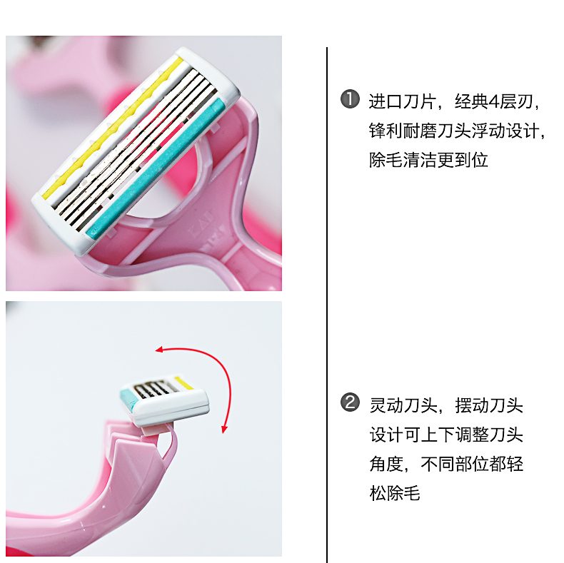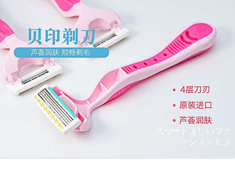 贝印女用剃刀四枚刃PK4-1P 脱毛刀女士专用私处腋毛腿毛剃毛器刮毛刀剃刀私处剃毛刀