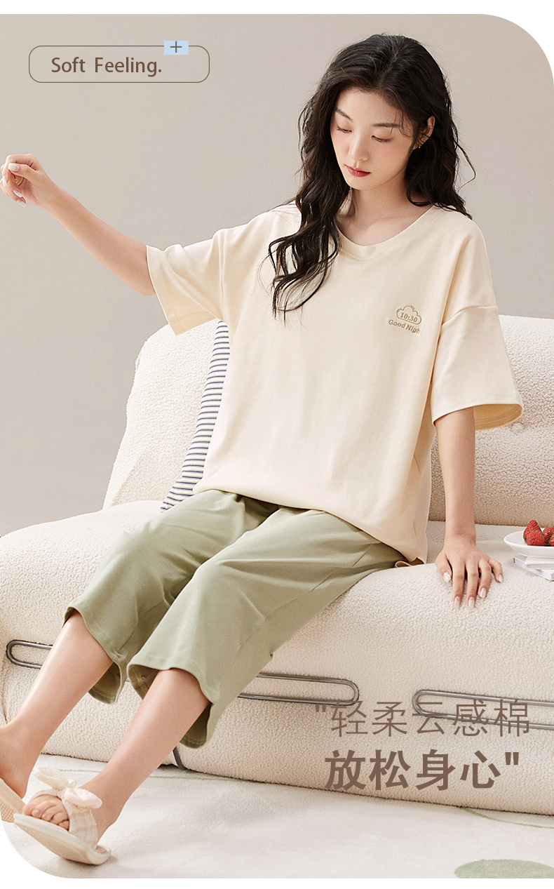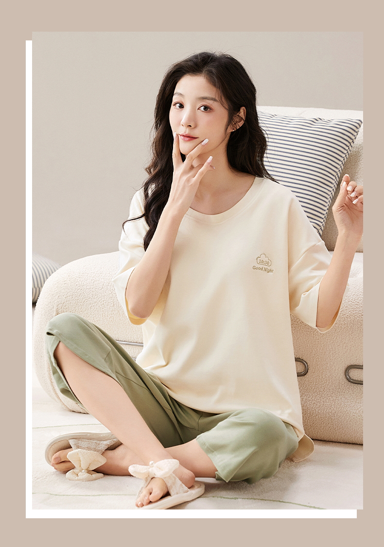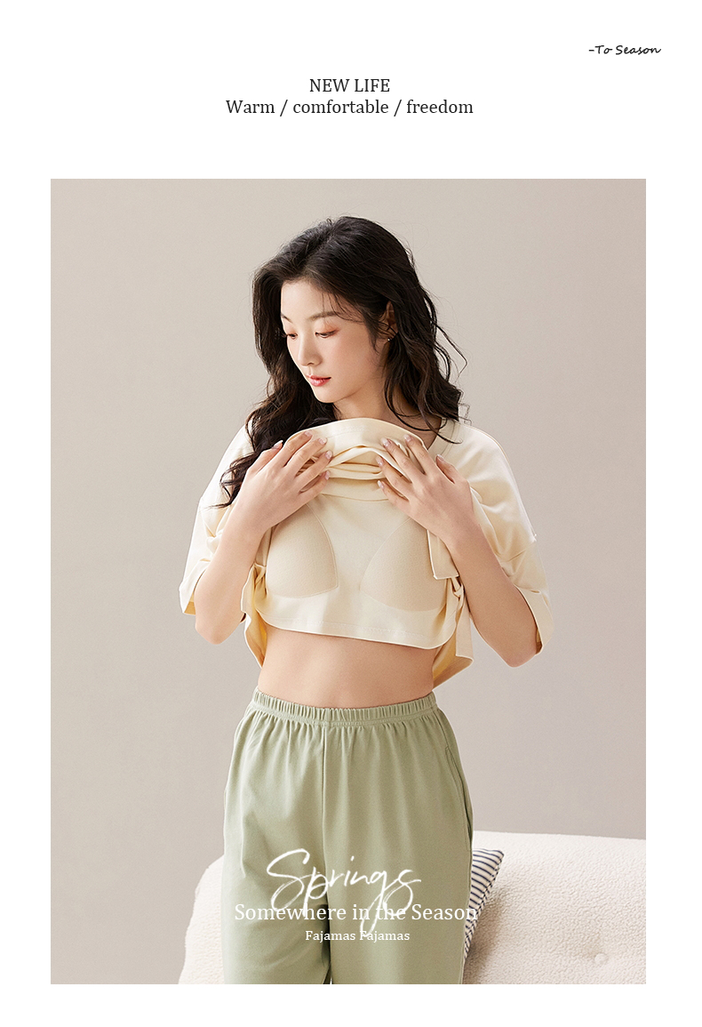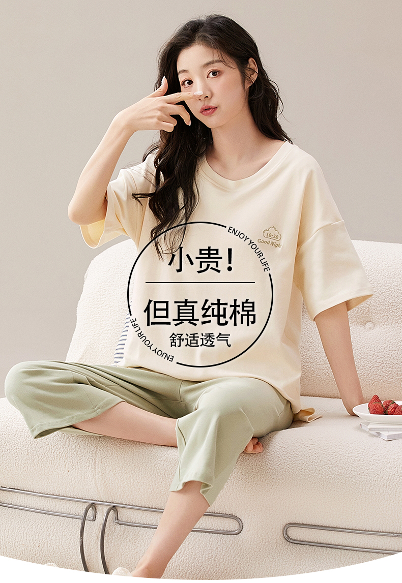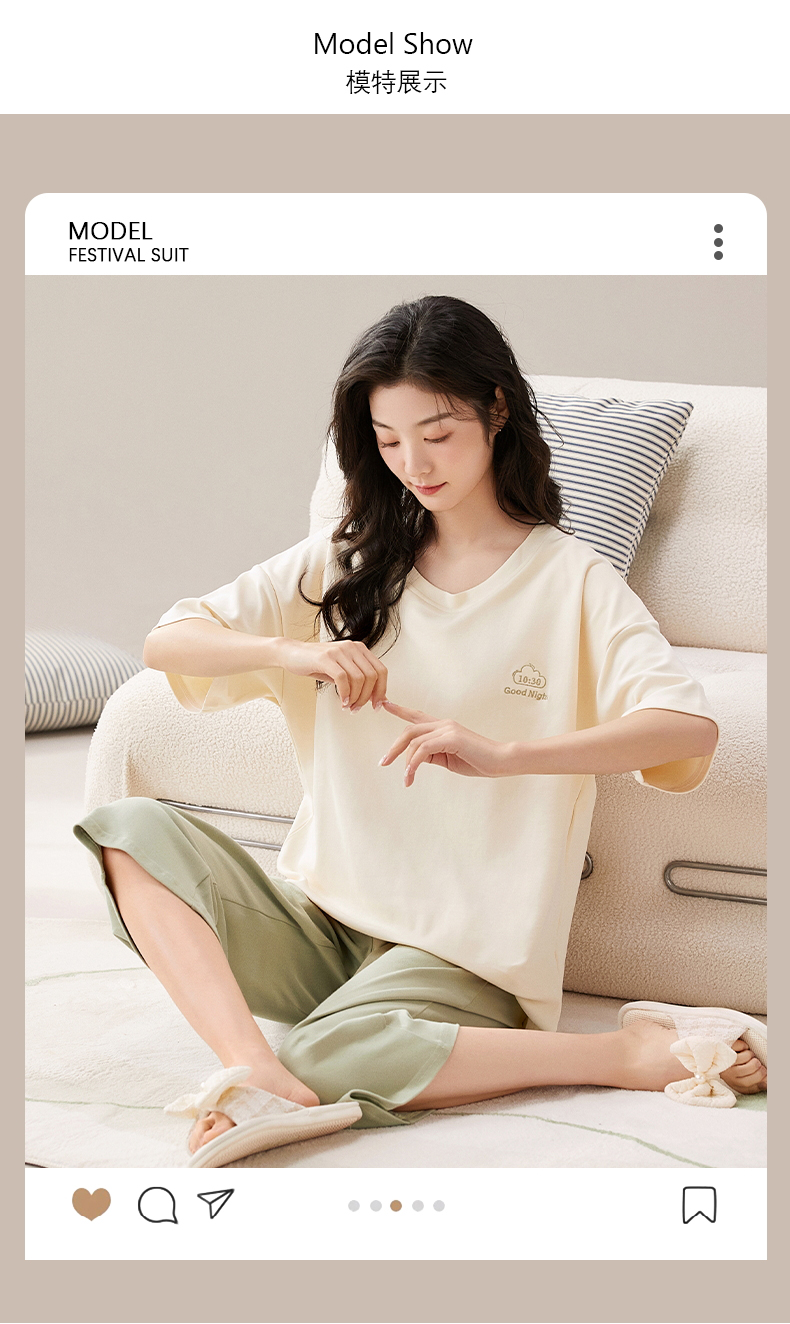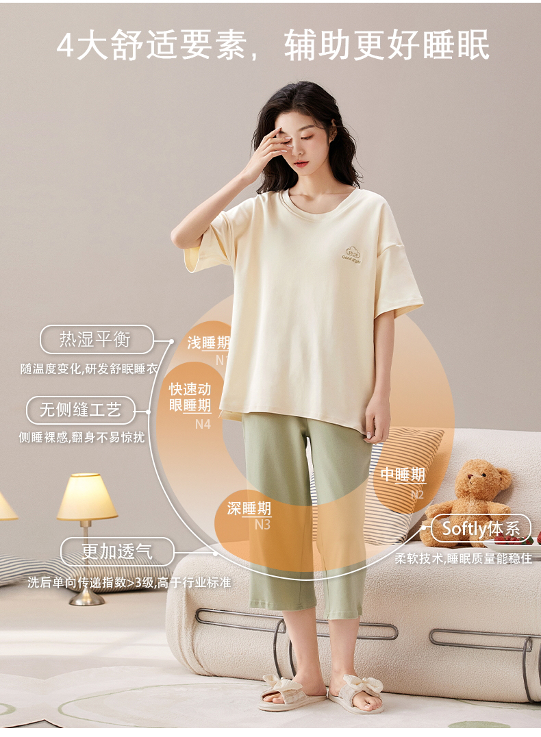 自然醒花漾牛奶丝家居服女款开衫(带胸垫)睡衣春秋款长袖长裤可爱卡通学生秋冬季V领和服QH