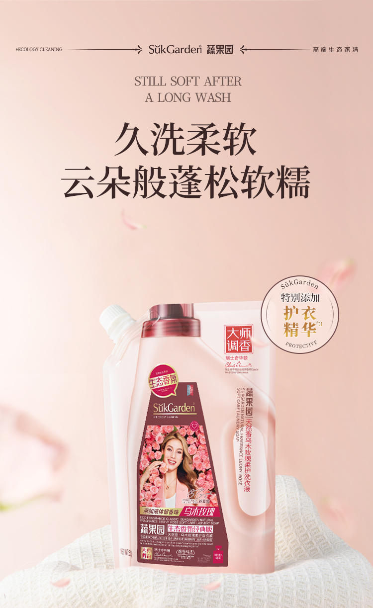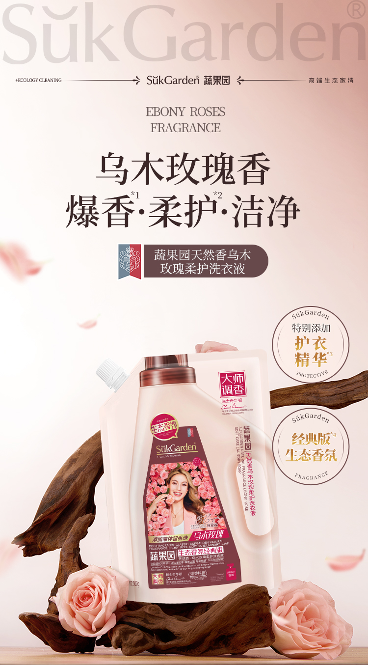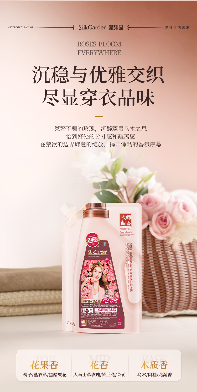 SukGarden蔬果园天然香乌木玫瑰柔护洗衣液(袋装)-500g
