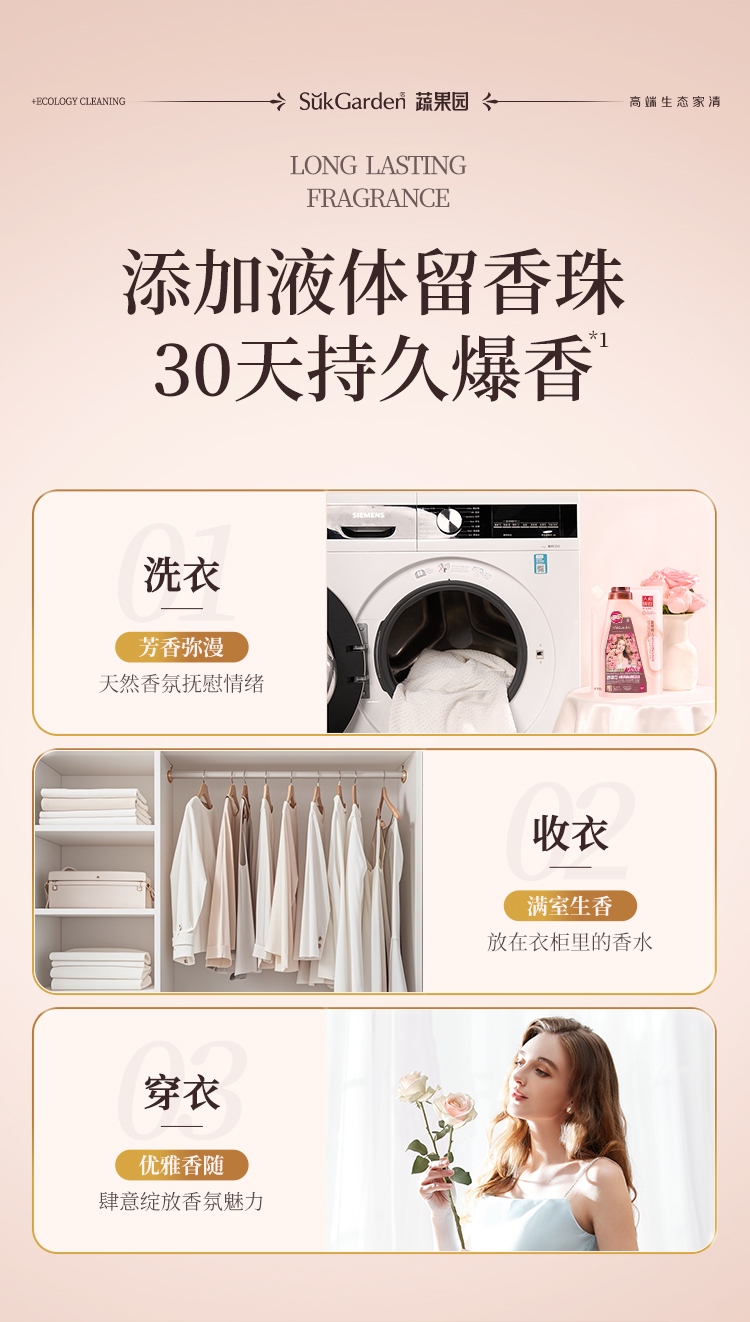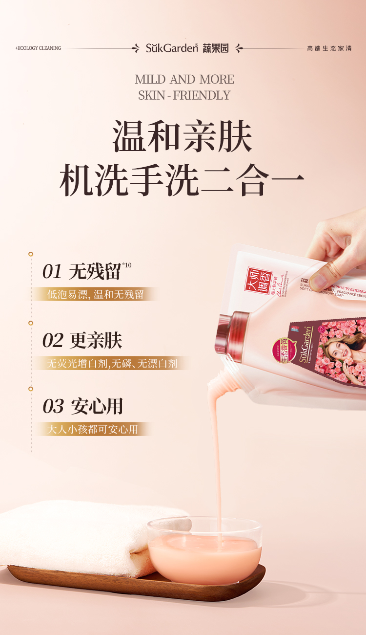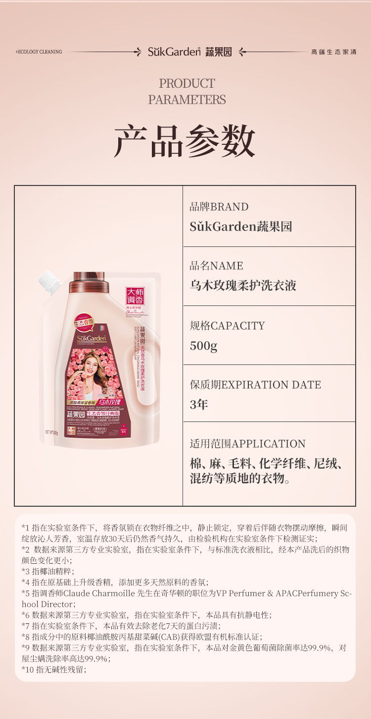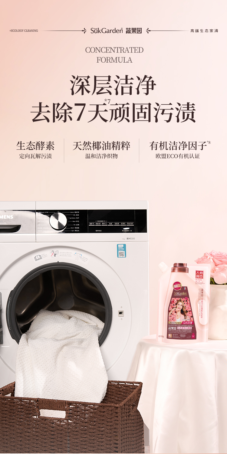SukGarden蔬果园天然香乌木玫瑰柔护洗衣液(袋装)-500g