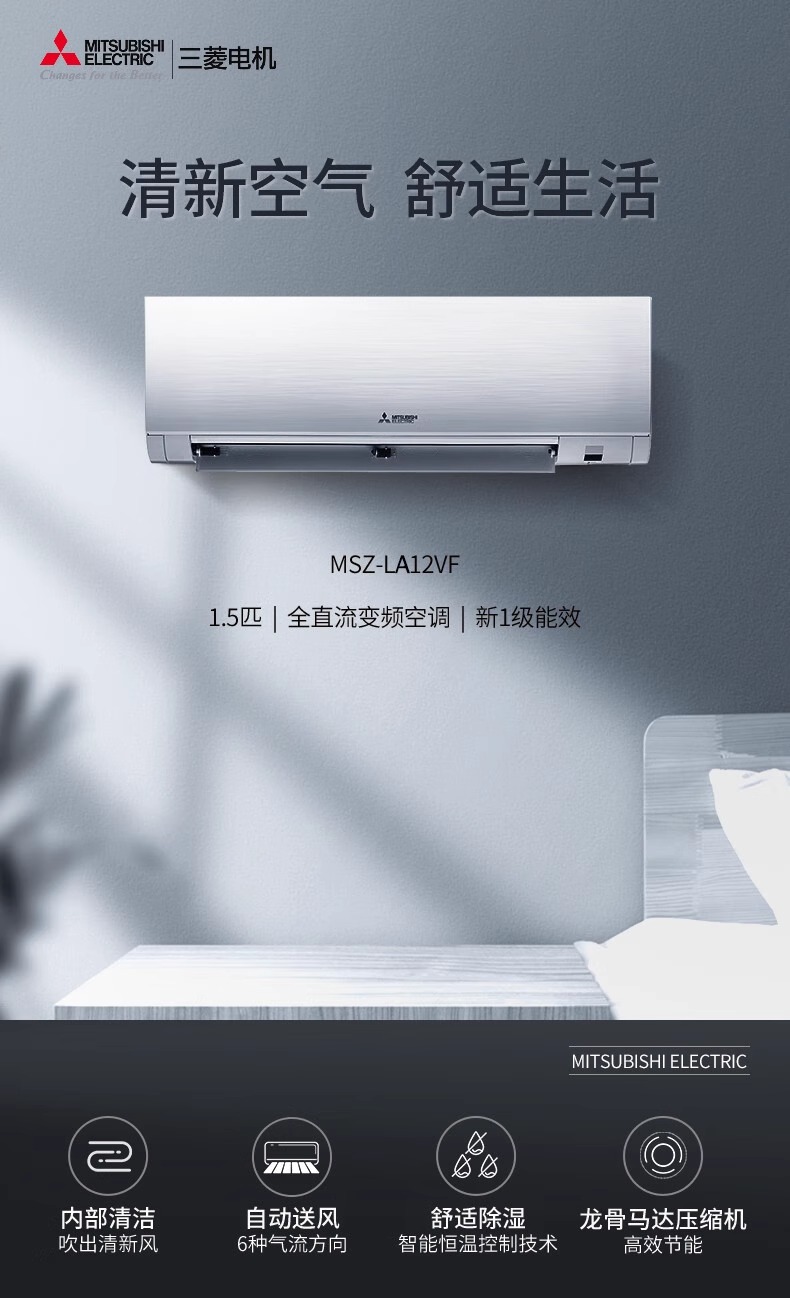 【国补15%】三菱电机MSZ-LA12VF大1.5匹P变频空调卧室壁挂式一级能效24年新款