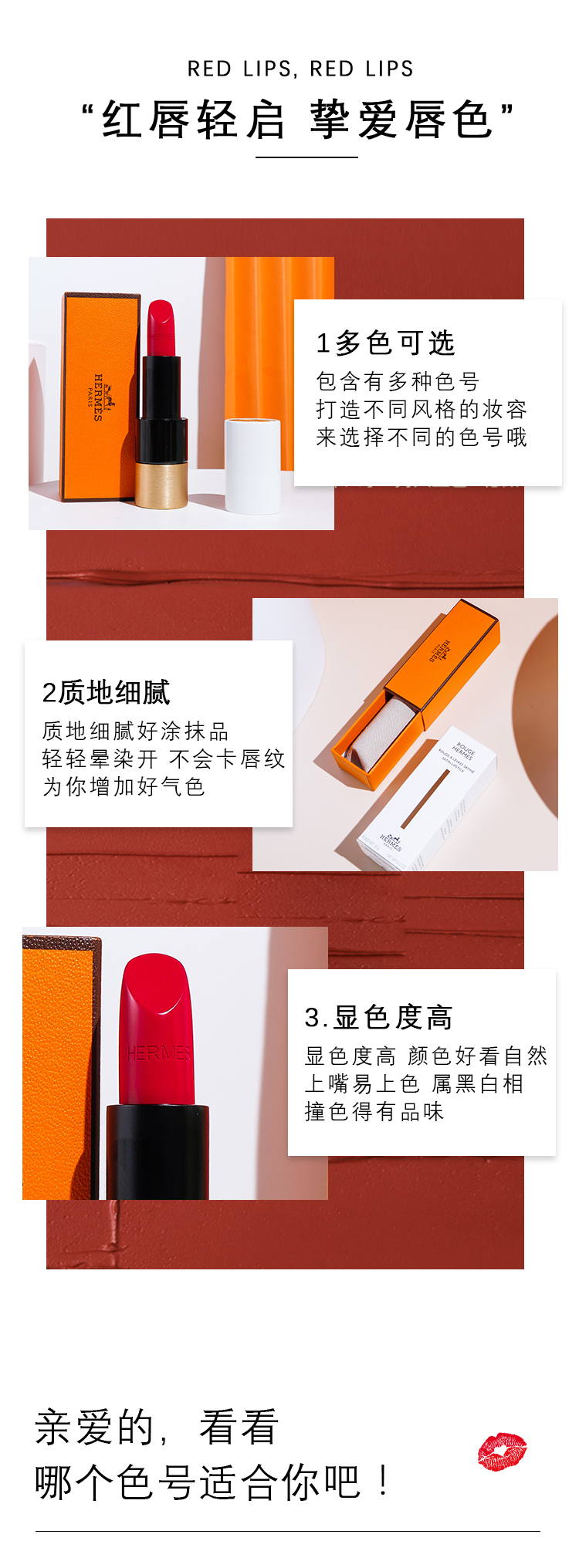 Hermes/爱马仕 口红 缎面滋润 唇膏 #75橘调番茄