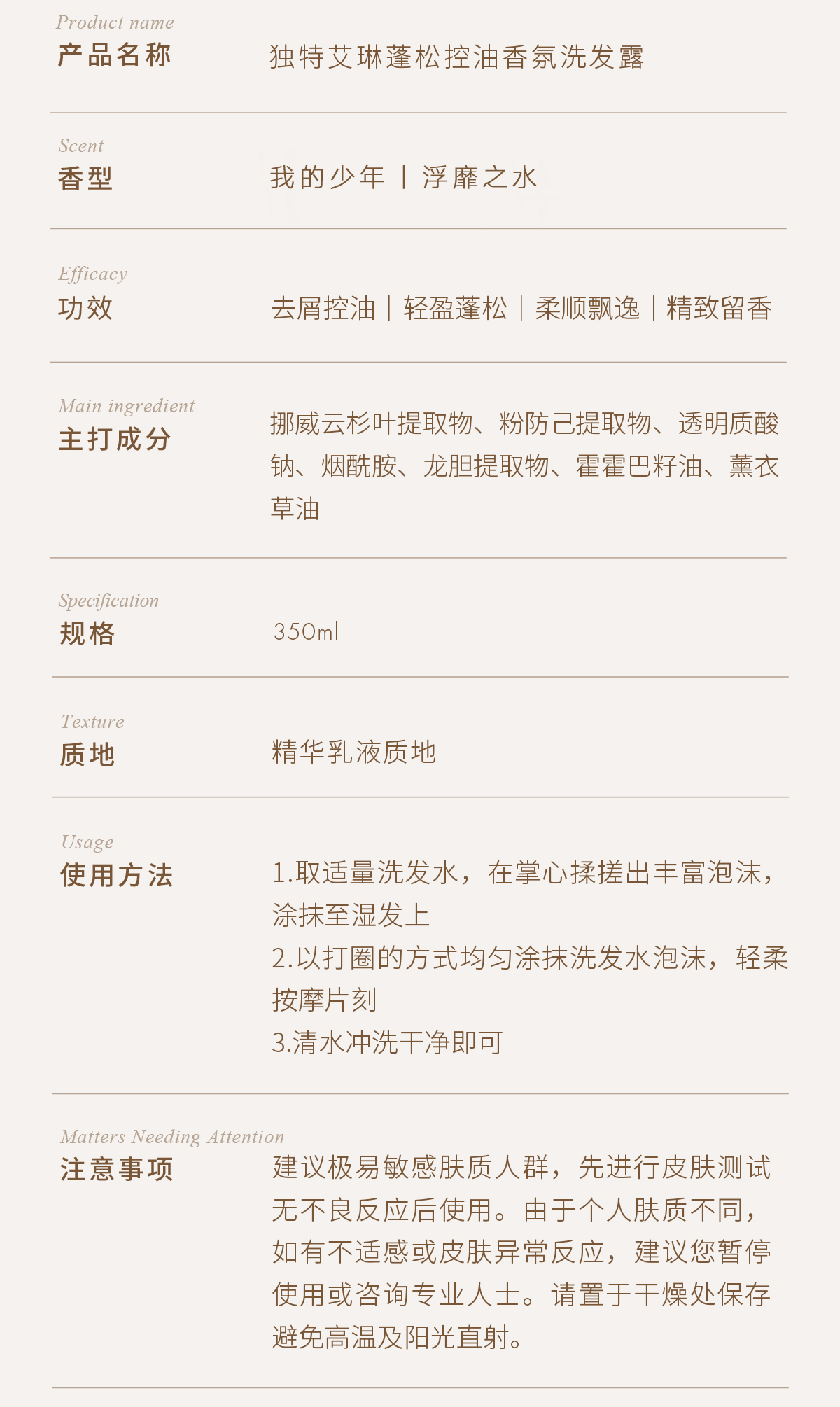 【现货速发丨懒人护发套组】DearIrean 独特艾琳去屑控油香氛洗发露350g+护发精油40ml / 护发精油喷雾40ml(官方自营)