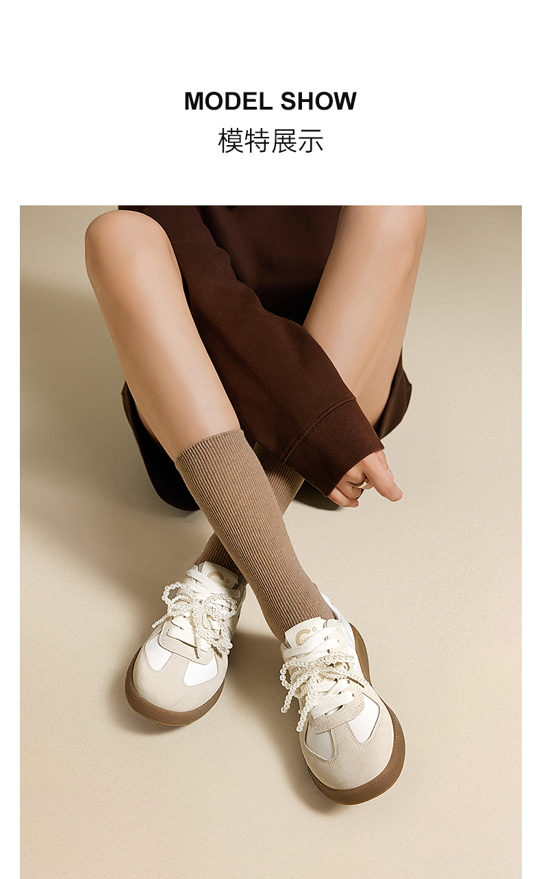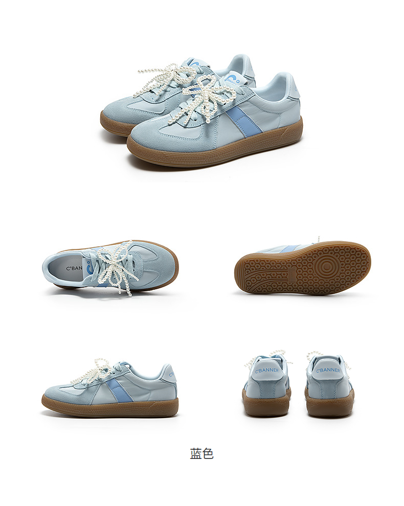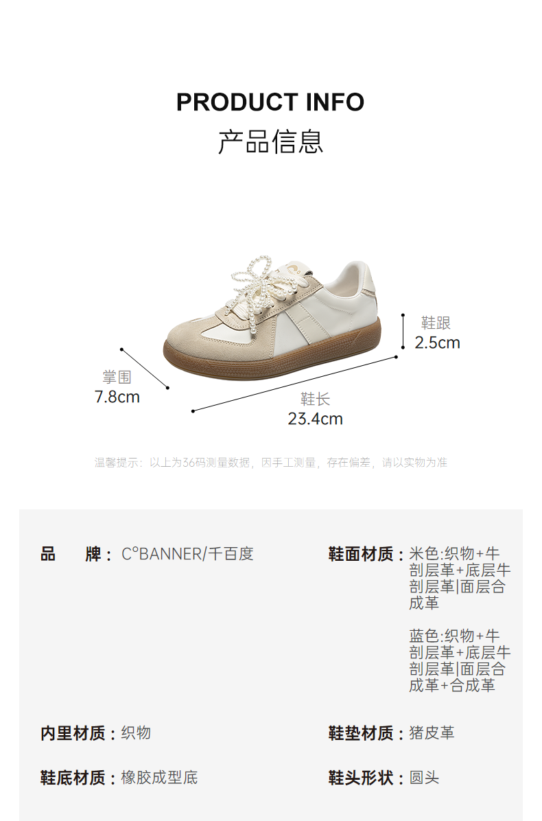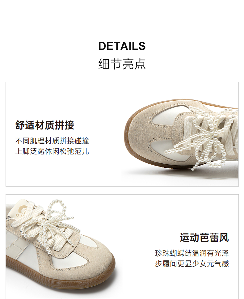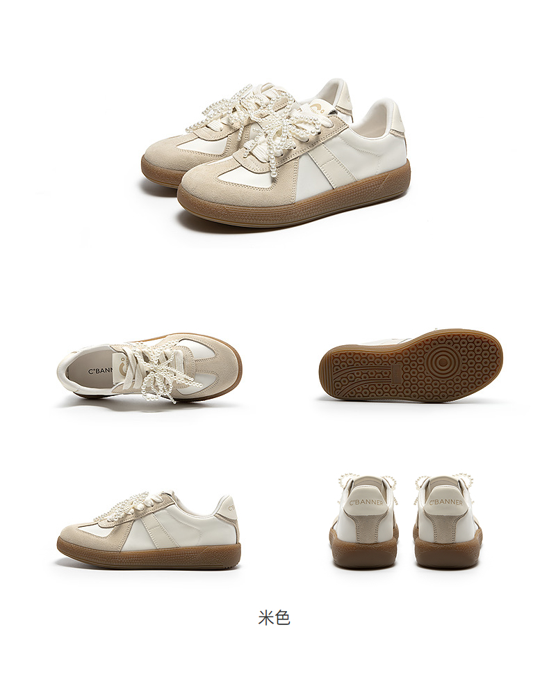 千百度珍珠蝴蝶结德训鞋女款复古板鞋时尚运动休闲鞋A25400801