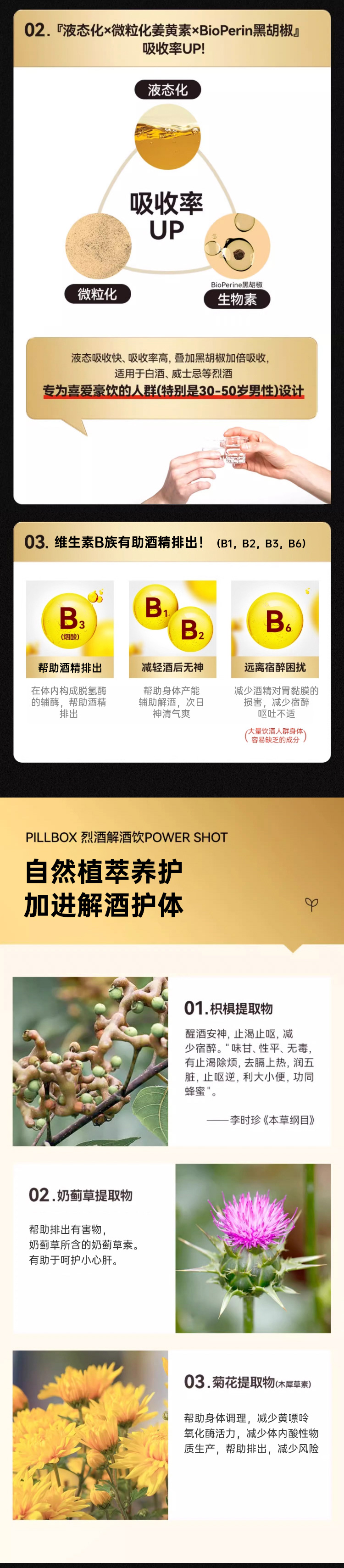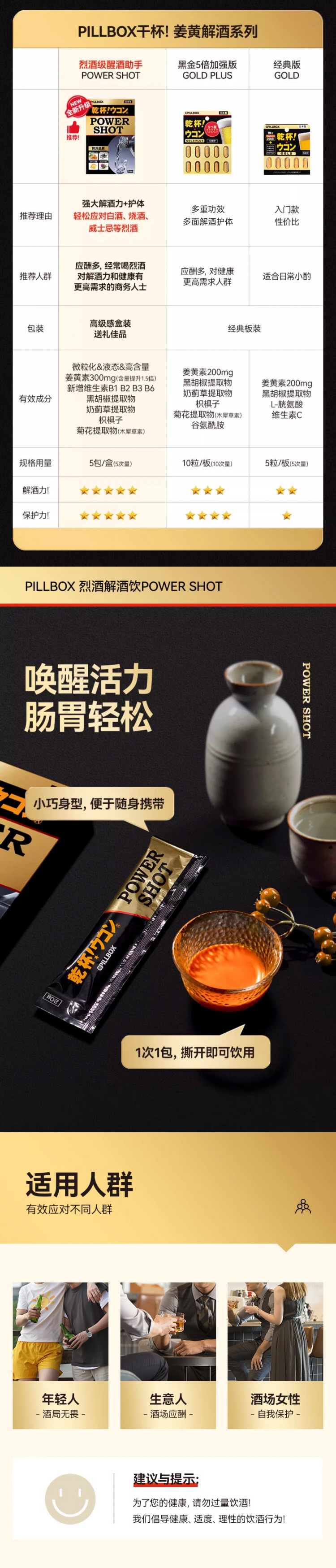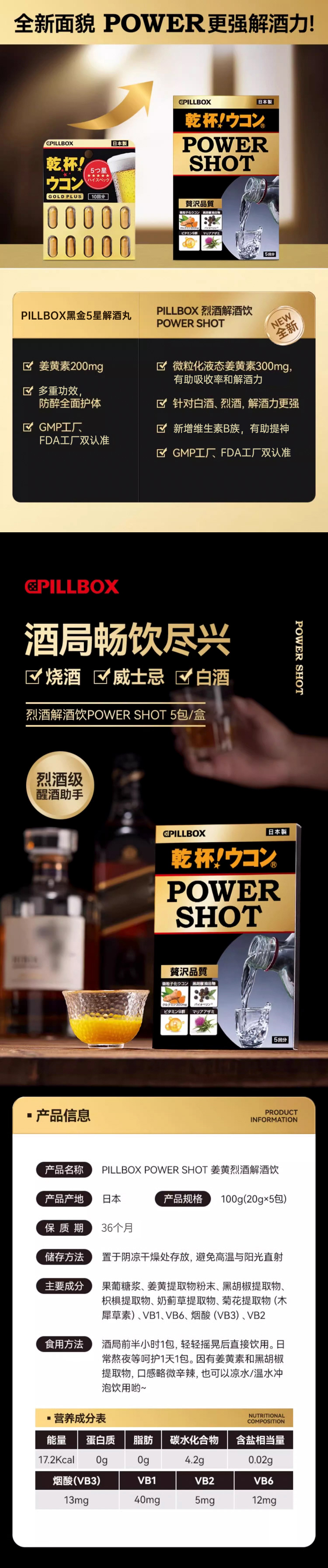 日本PILLBOX 干杯姜黄烈解酒醒酒饮powershot 5条/盒